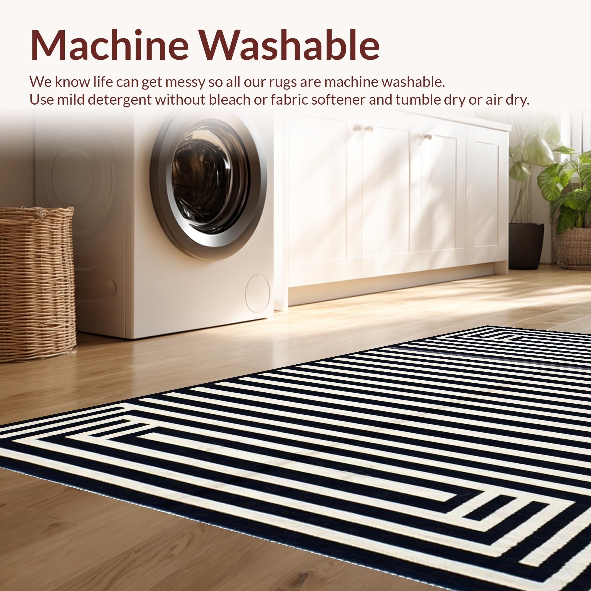- Machine Washable: Our rugs can be easily thrown in the wash machine.