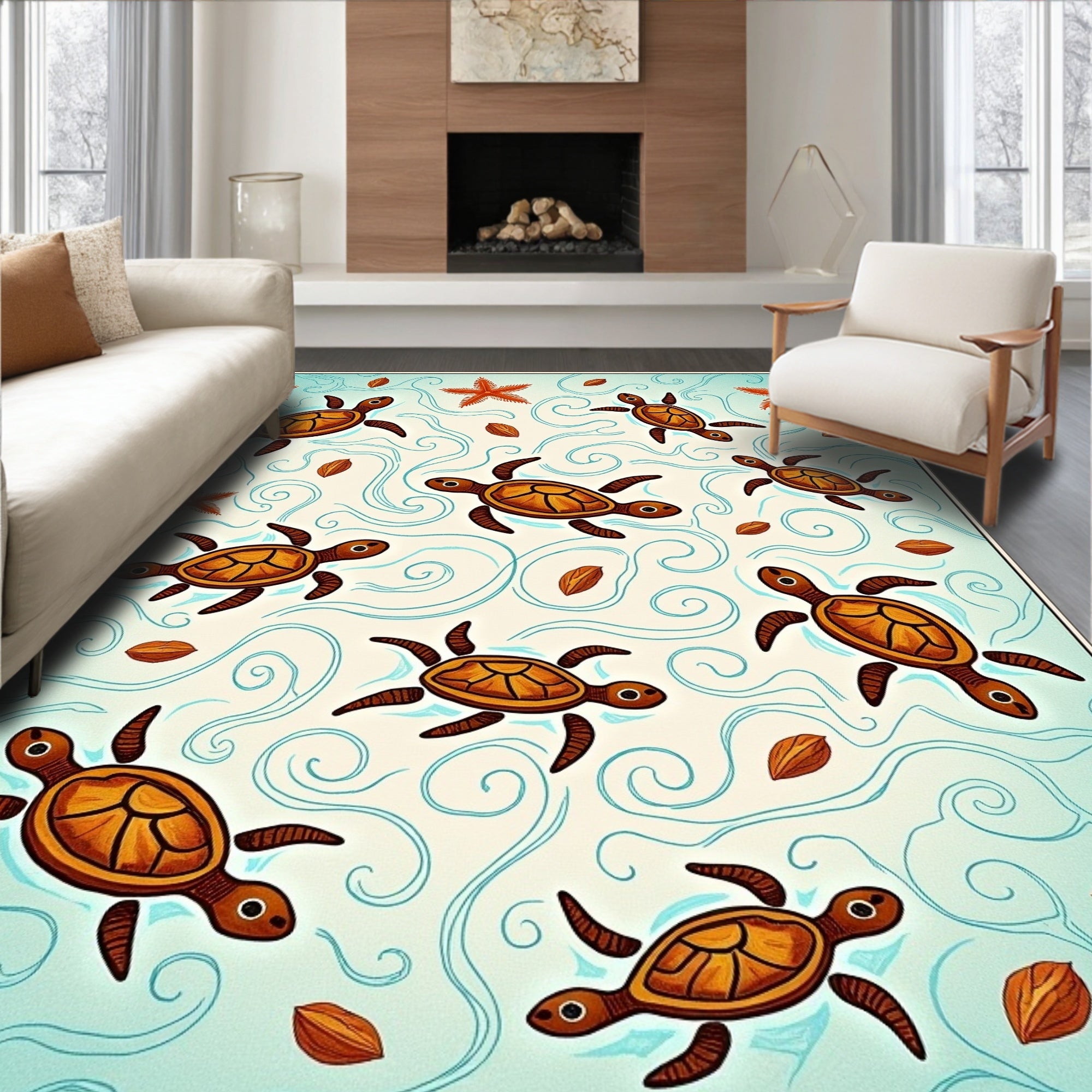 Flatwoven High Traffic Area Rug, Expedition Nautical Voyage Shell Treasure Map Discovery, Non Slip, Stain Resistant, Washable Area Rugs for Living Room, Bedroom (Brown) Overview:
