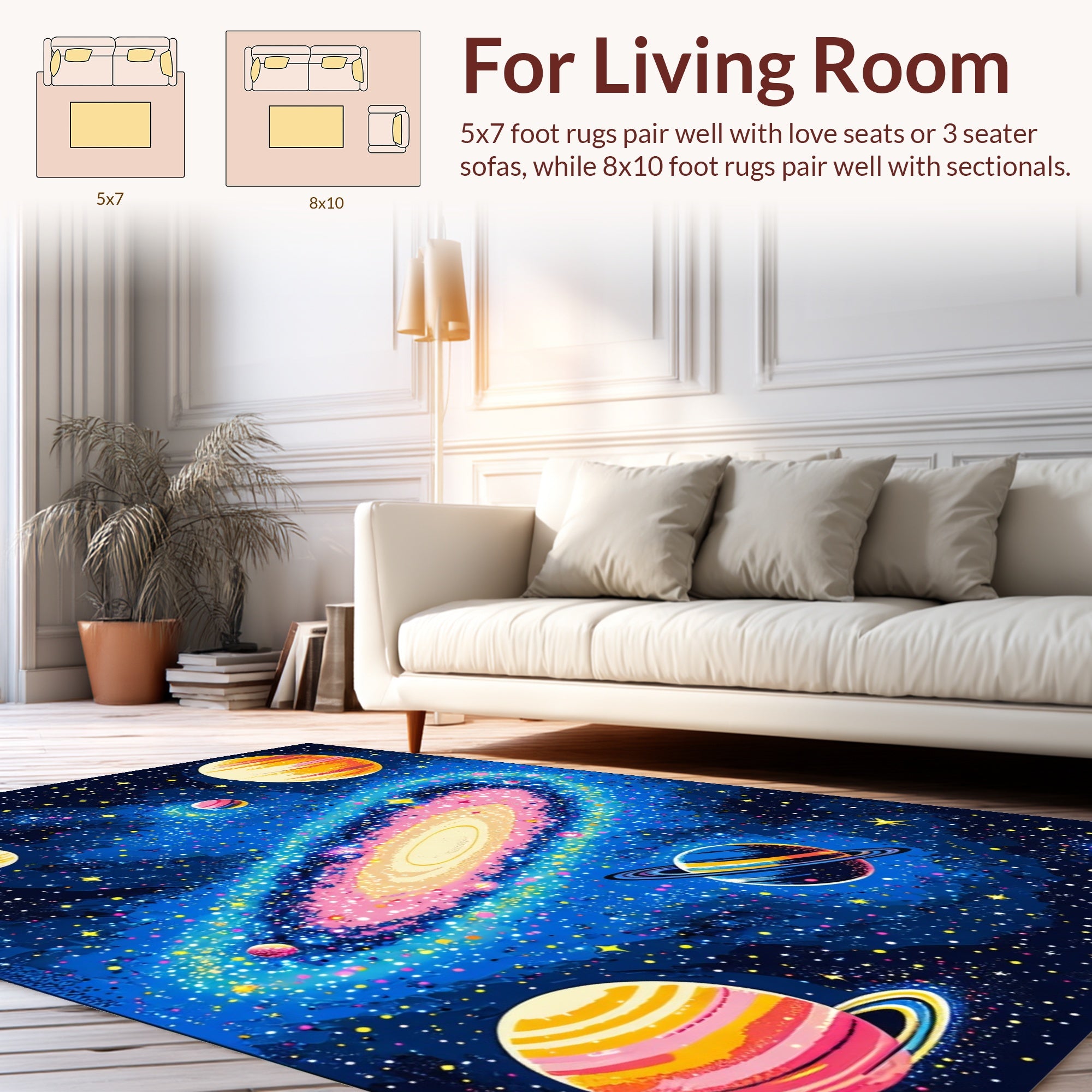 Flatwoven High Traffic Area Rug, Exploratory Starry Sky Aesthetic, Non Slip, Stain Resistant, Washable Area Rugs for Living Room, Bedroom (Blue) Overview: