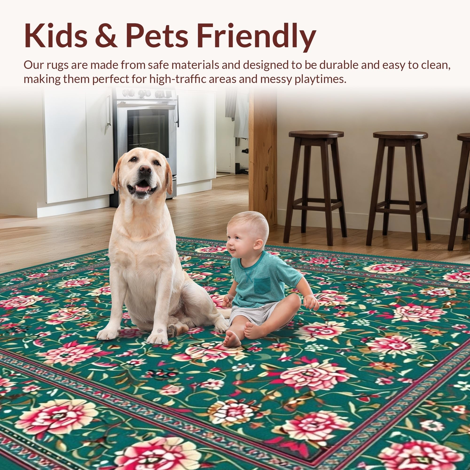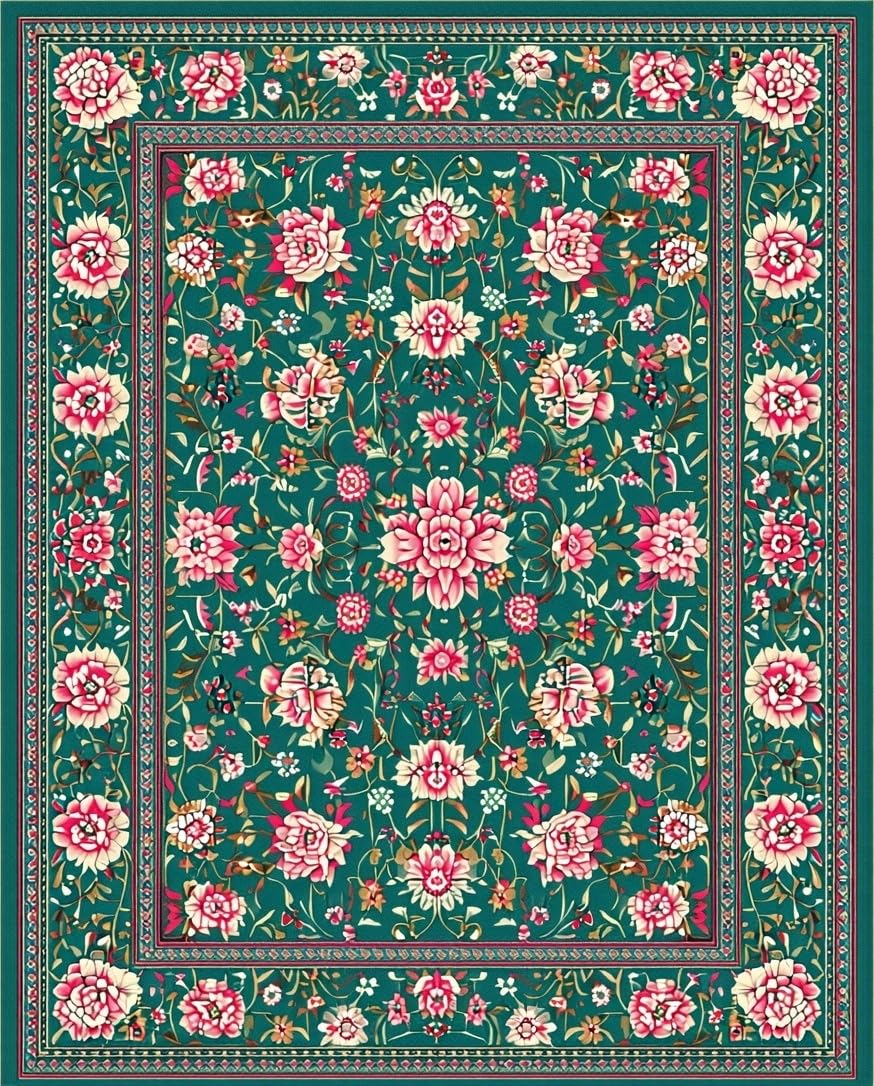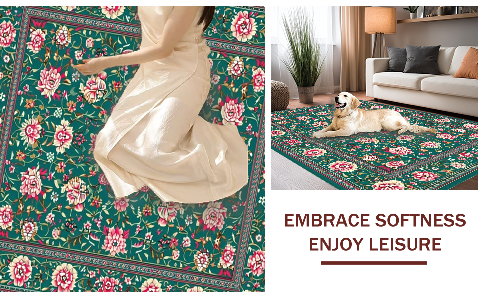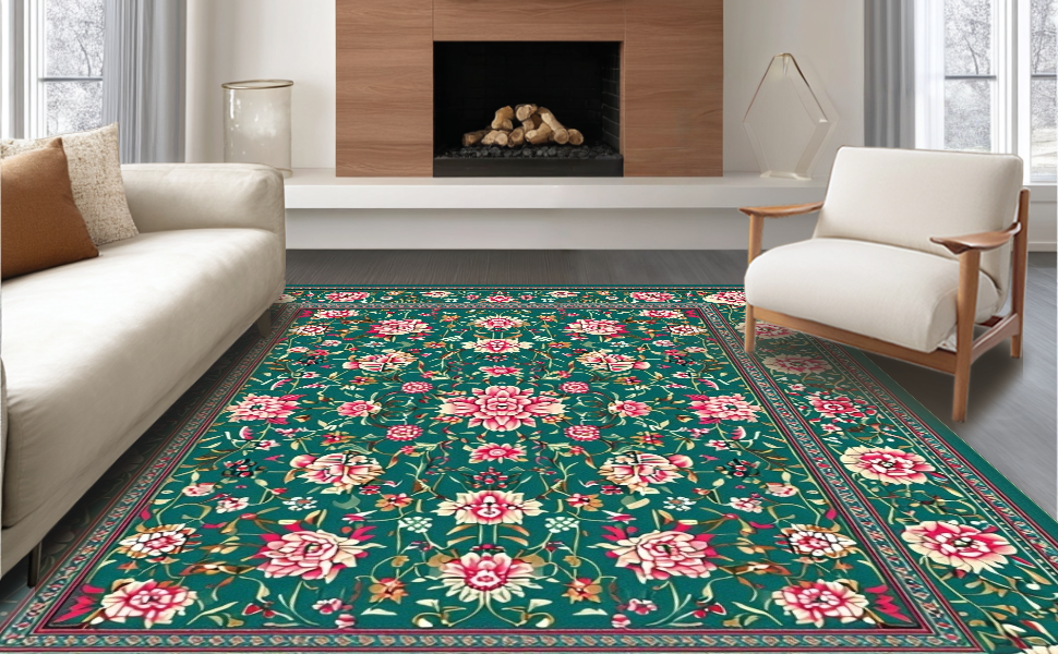 Ultra Soft Area Rug, Non Slip, Stain Resistant, Washable Area Rugs for Living Room, Bedroom, Exquisite Floral Lattice Craftsmanship(Green) Overview:
