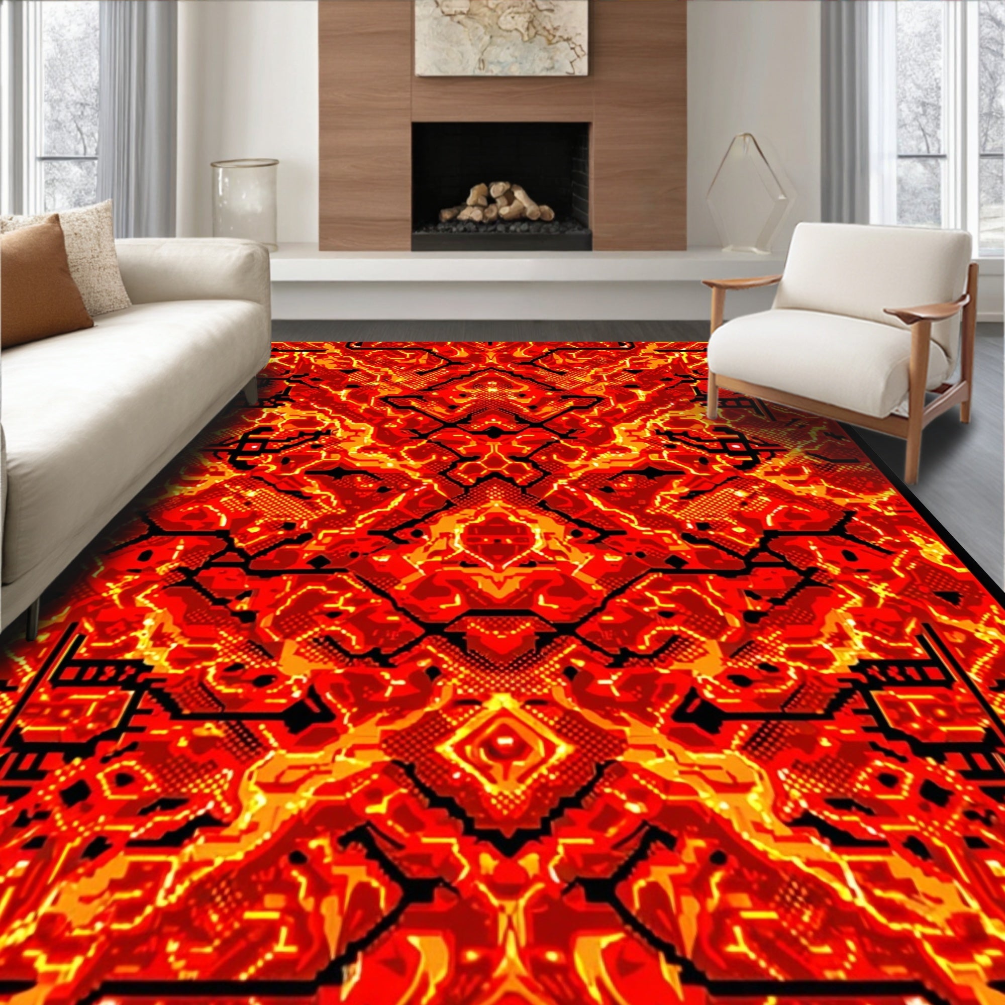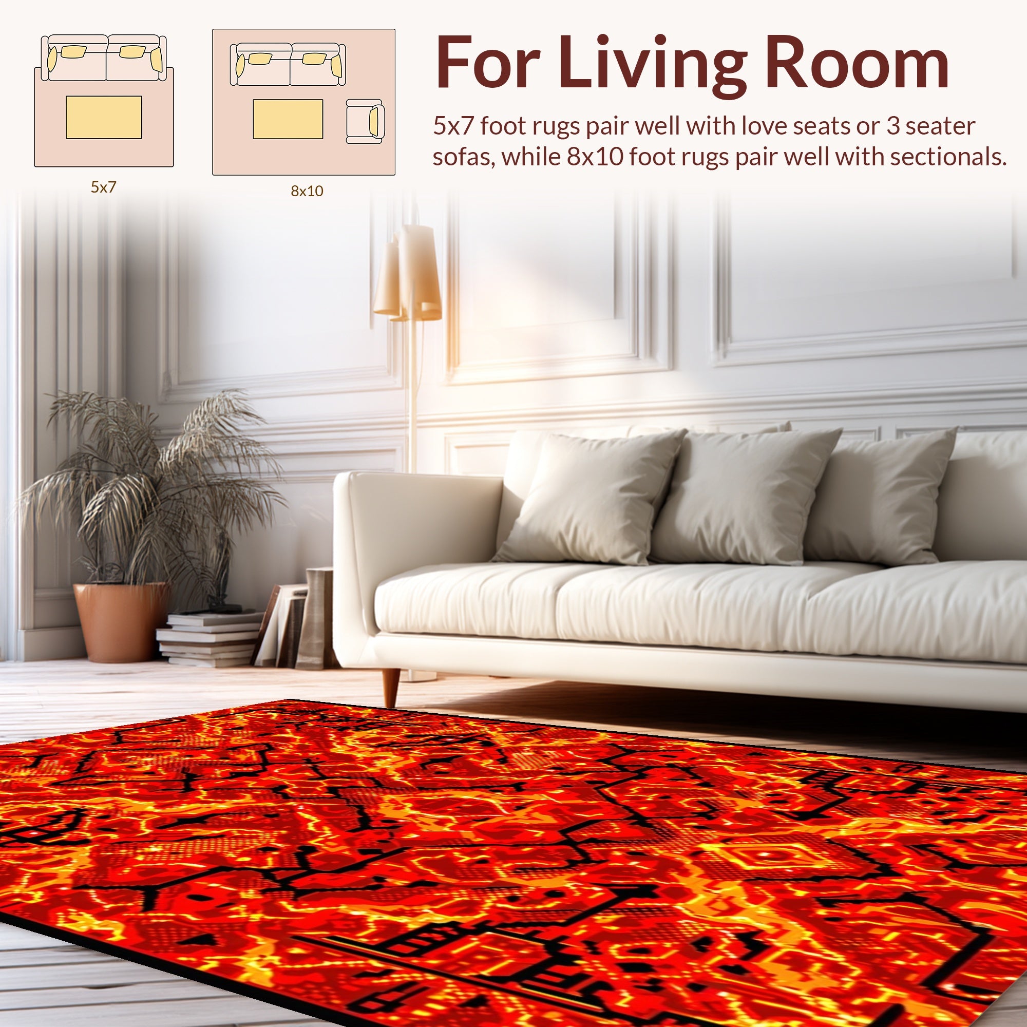 Flatwoven High Traffic Area Rug, Exuberant Geometric Influence, Non Slip, Stain Resistant, Washable Area Rugs for Living Room, Bedroom (Red) Overview: