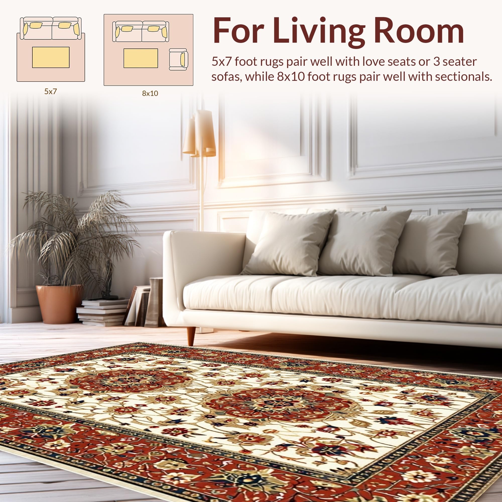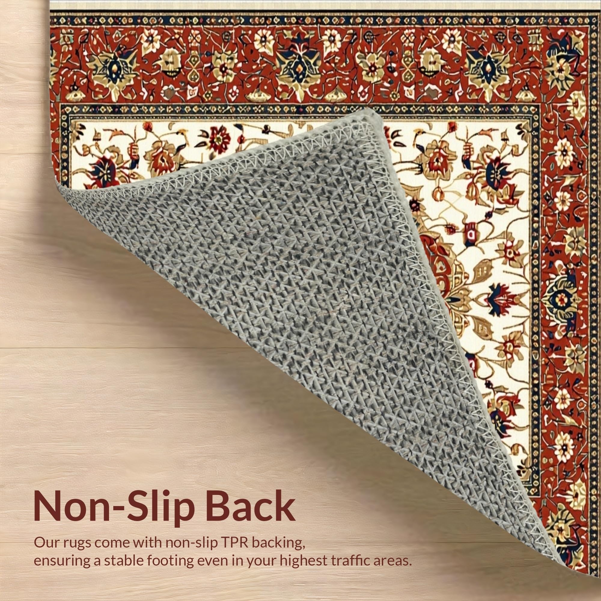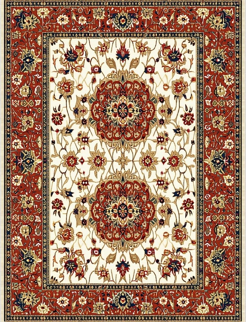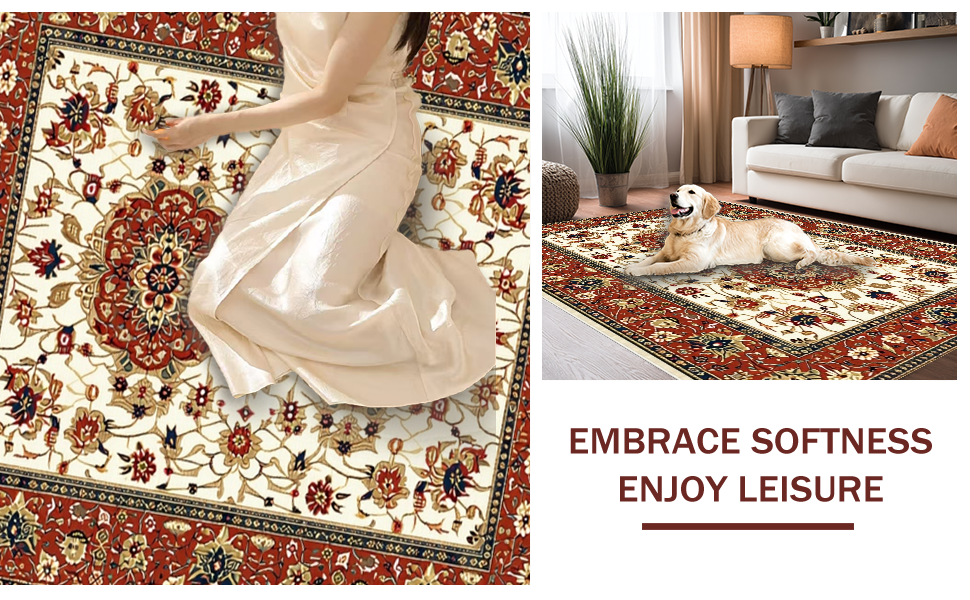 Ultra Soft Area Rug, Non Slip, Stain Resistant, Washable Area Rugs for Living Room, Bedroom, Eye-Catching Geometric Floral Blend(Red) Overview: