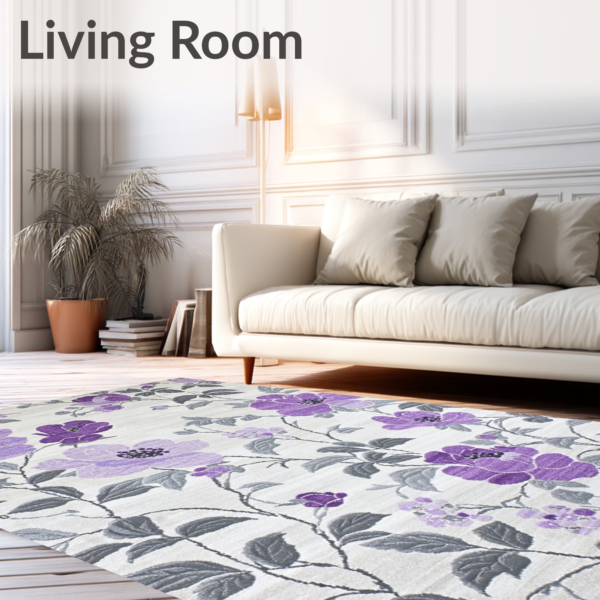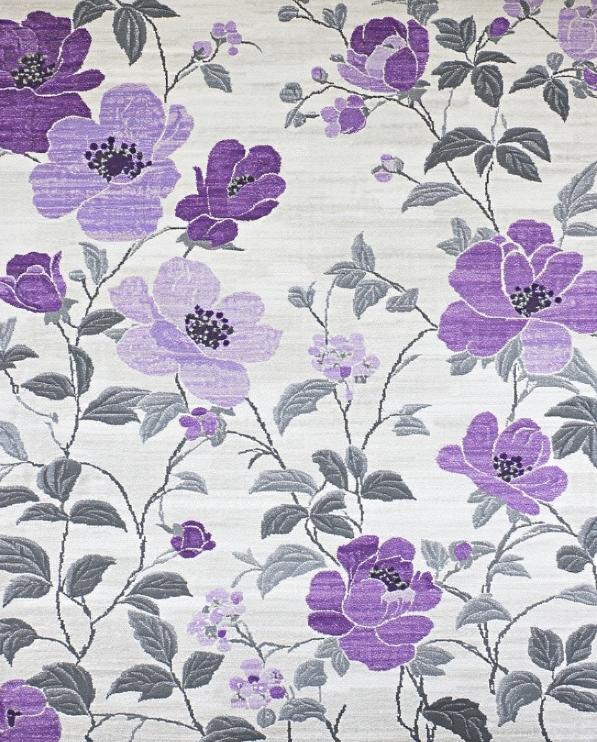 Flatwoven High Traffic Area Rug, Fantasy Flowers Light Grey & Purple, Non Slip, Stain Resistant, Washable Area Rugs for Living Room, Bedroom (Purple) Overview: