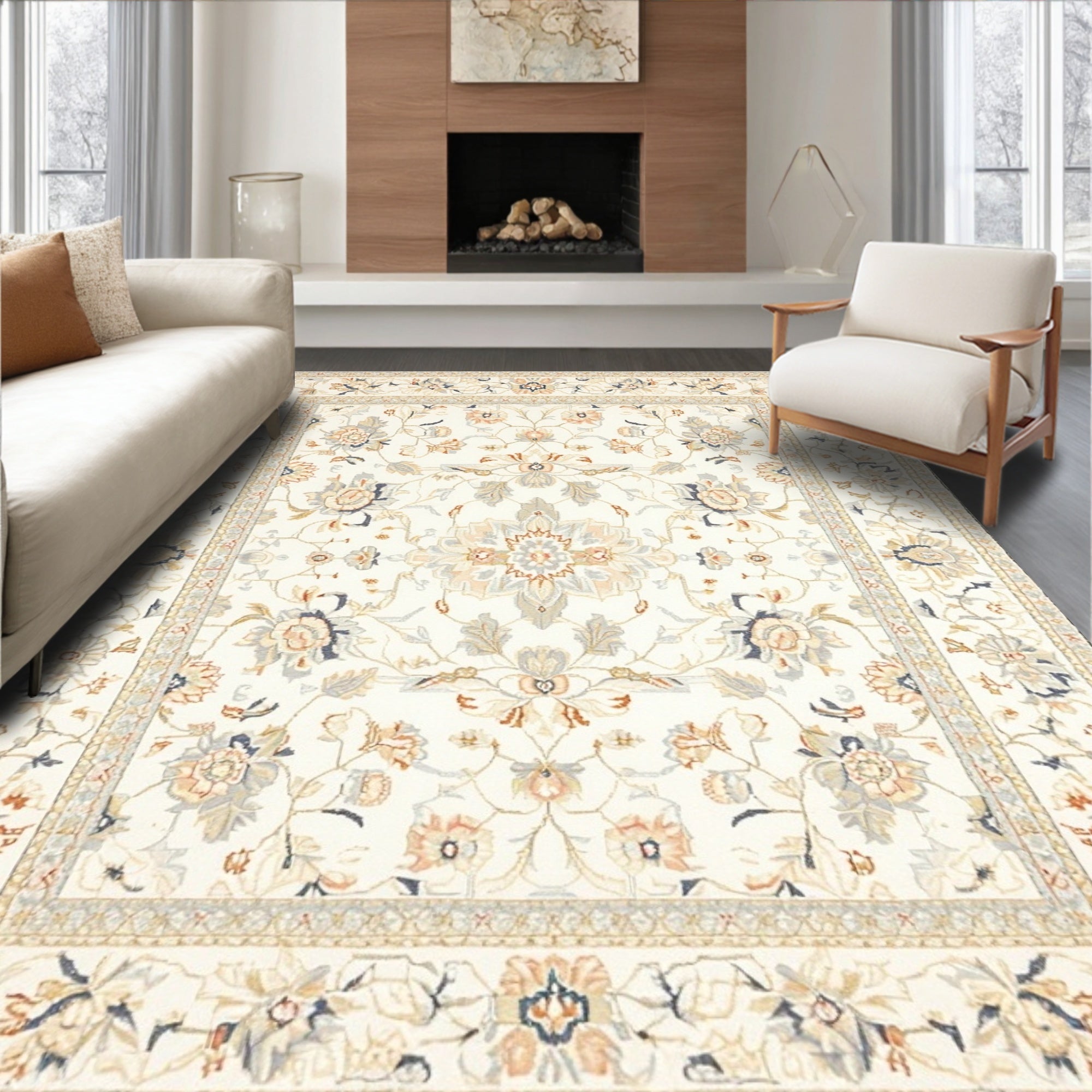 Ultra Soft Area Rug, Non Slip, Stain Resistant, Washable Area Rugs for Living Room, Bedroom, Farmhouse Inspired Beige Floral Indoor Floor Cover(Beige) Overview: