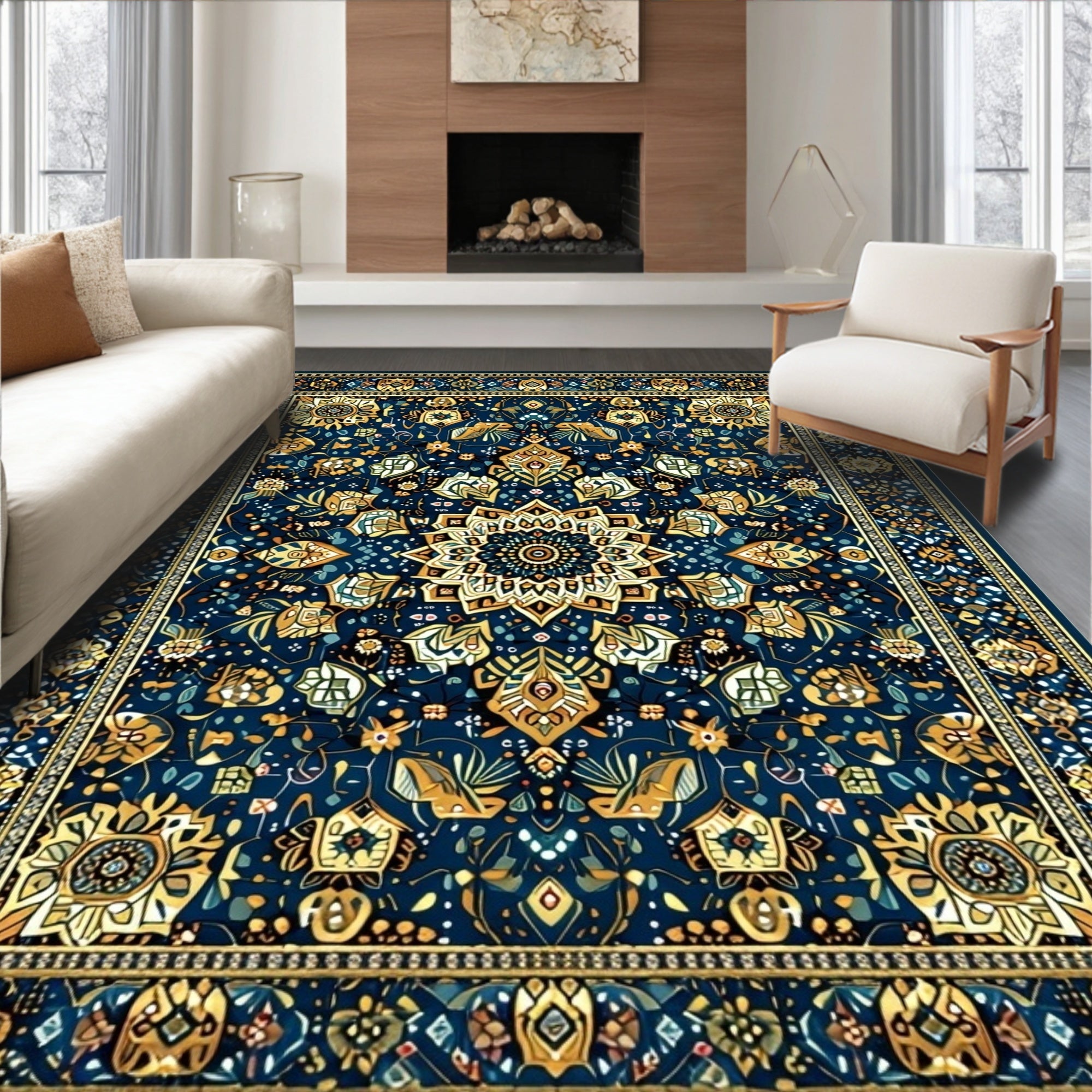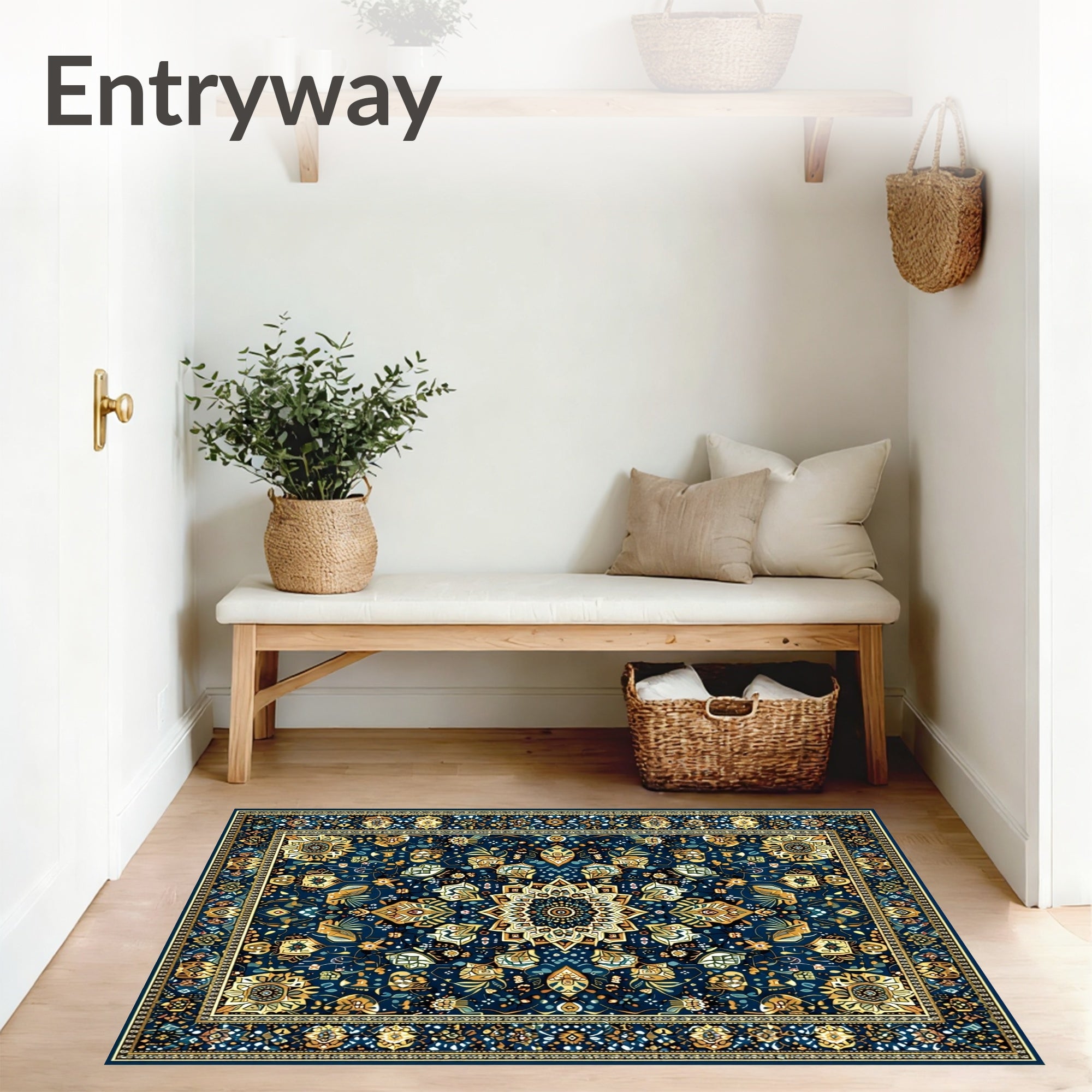 Ultra Soft Area Rug, Non Slip, Stain Resistant, Washable Area Rugs for Living Room, Bedroom, Faux Wool Floral Non Slip Beige Brown(Blue) Overview: