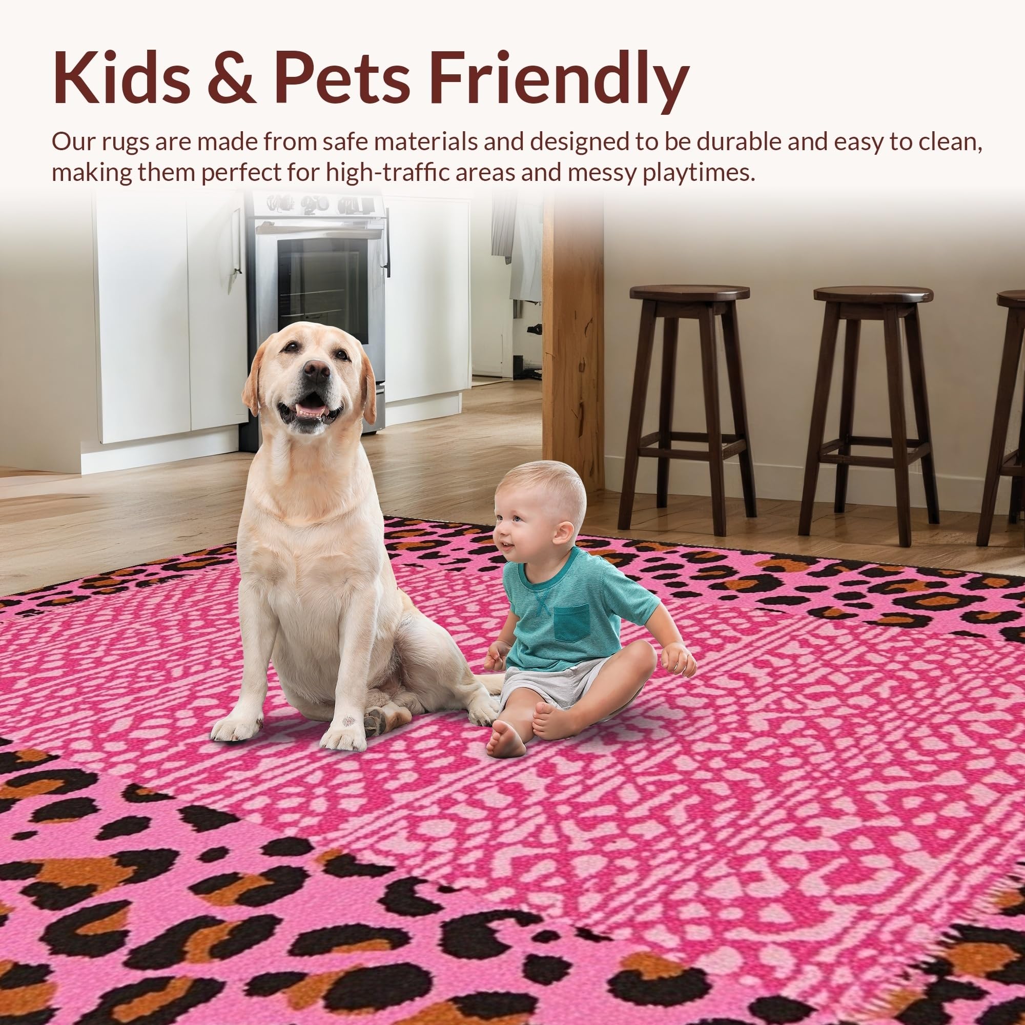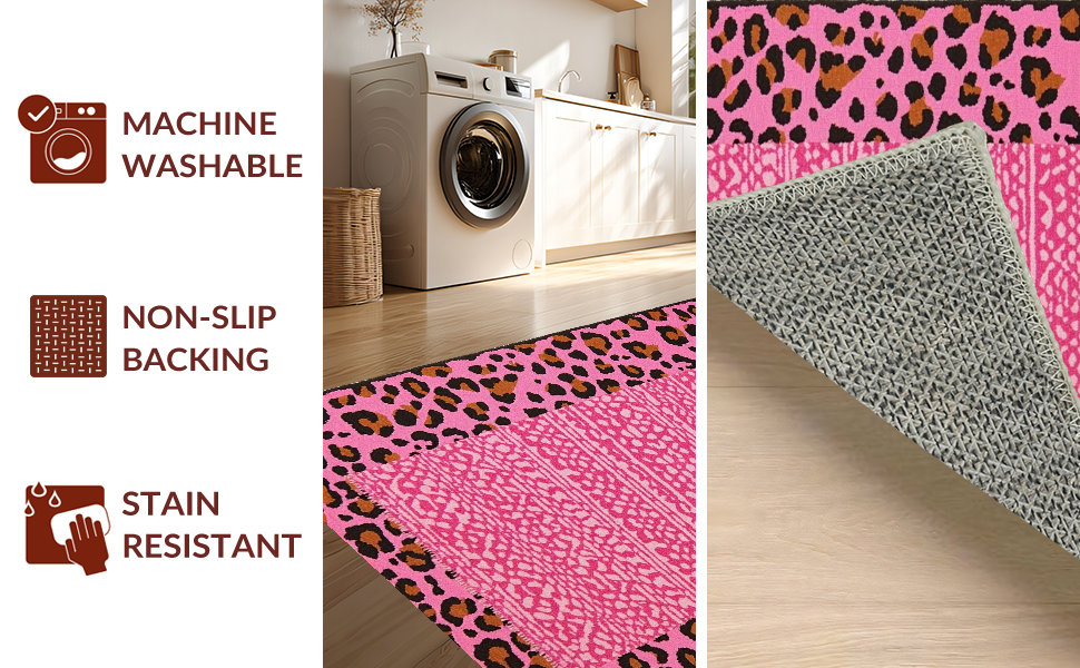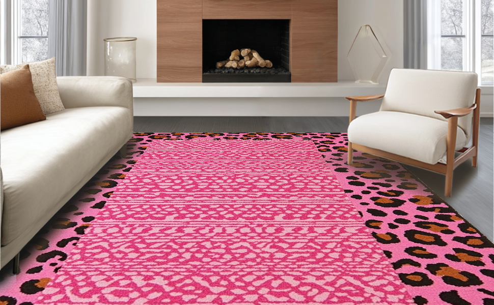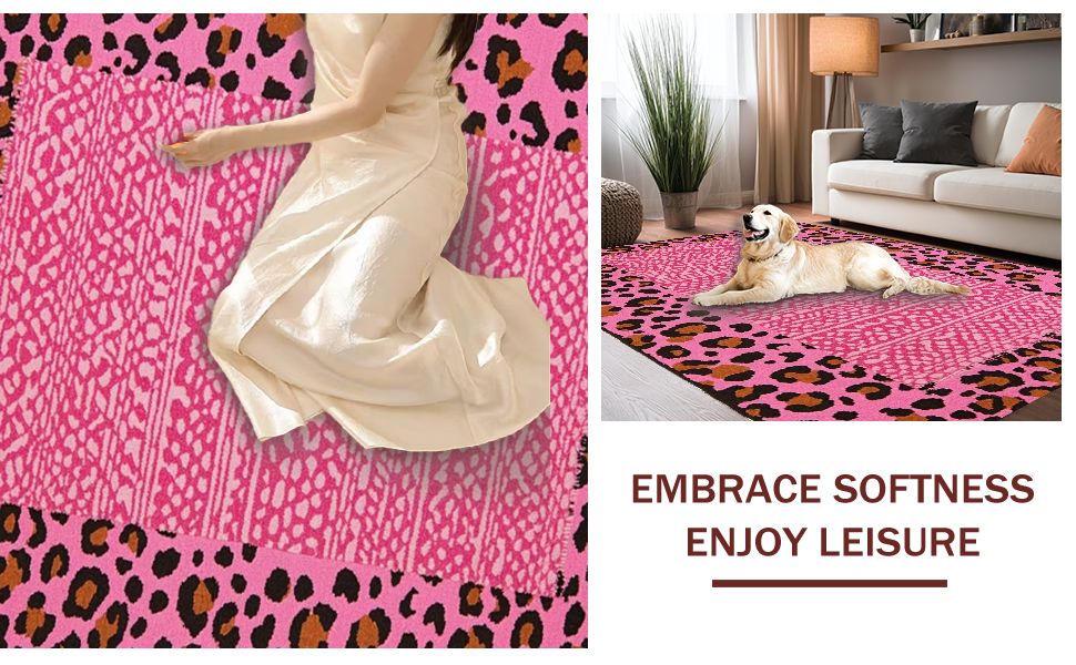 Ultra Soft Area Rug, Non Slip, Stain Resistant, Washable Area Rugs for Living Room, Bedroom, Feminine Chic Leopard Aesthetic(Pink) Overview: