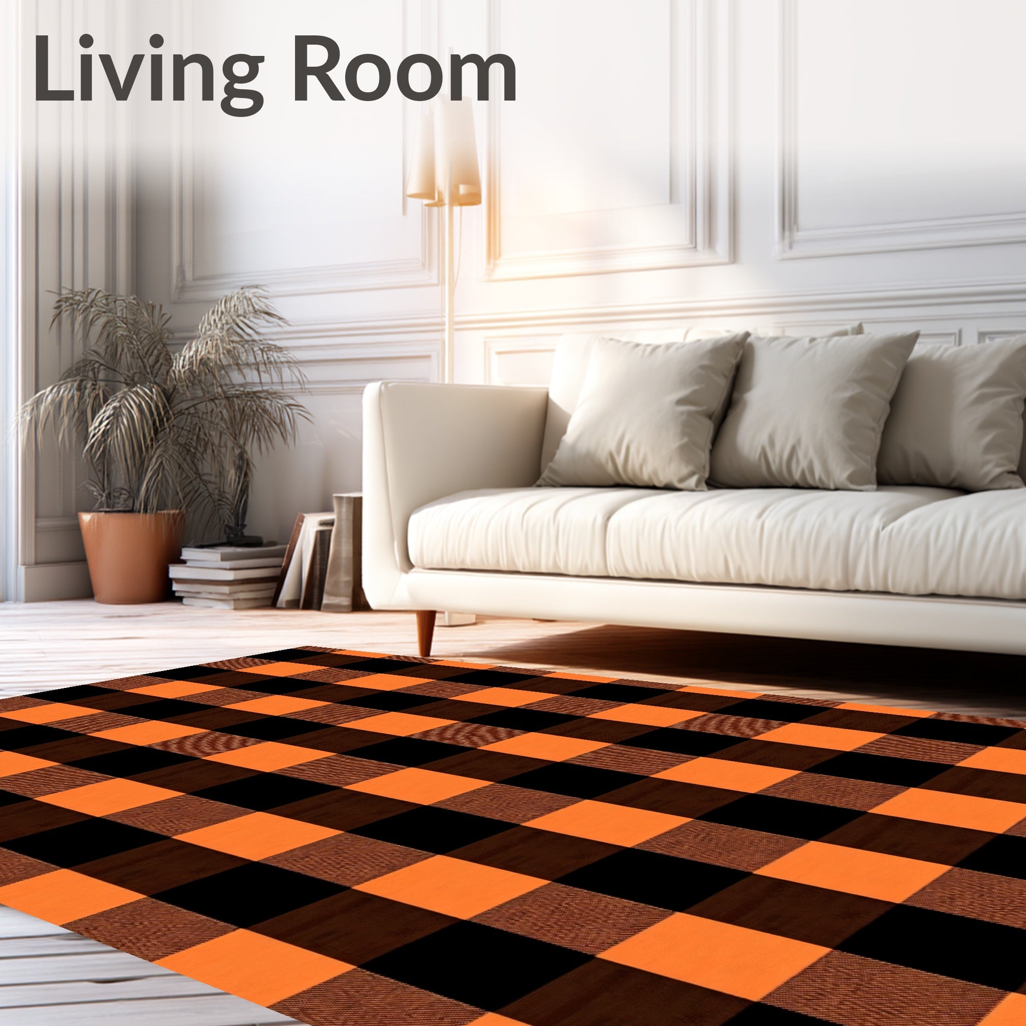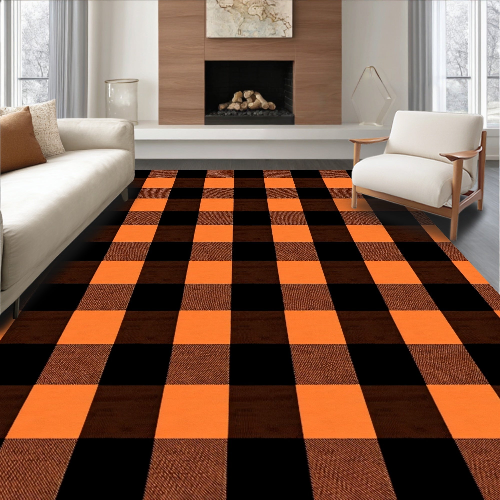 Ultra Soft Area Rug, Non Slip, Stain Resistant, Washable Area Rugs for Living Room, Bedroom, Festive Gingham Celebration Display(Orange) Overview: