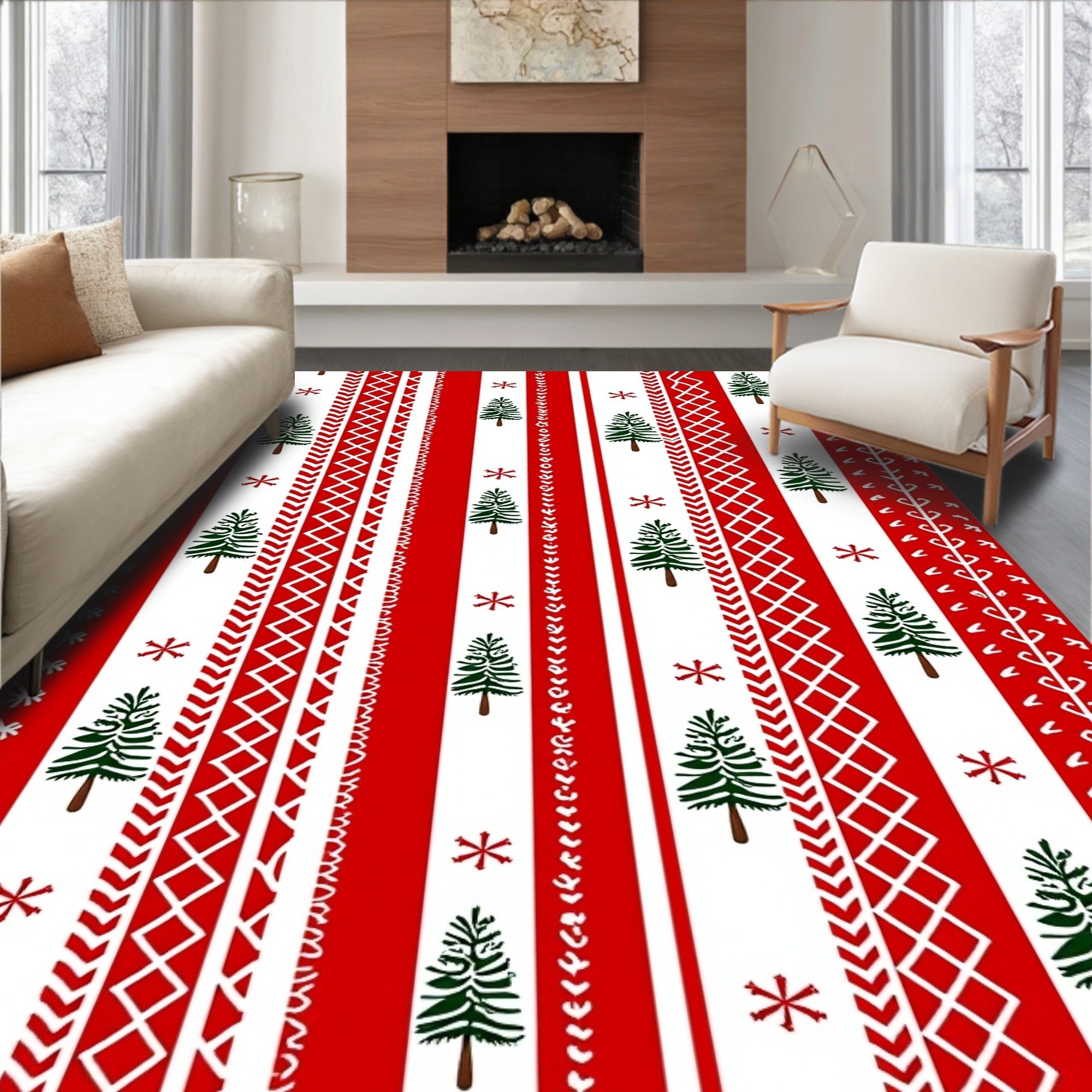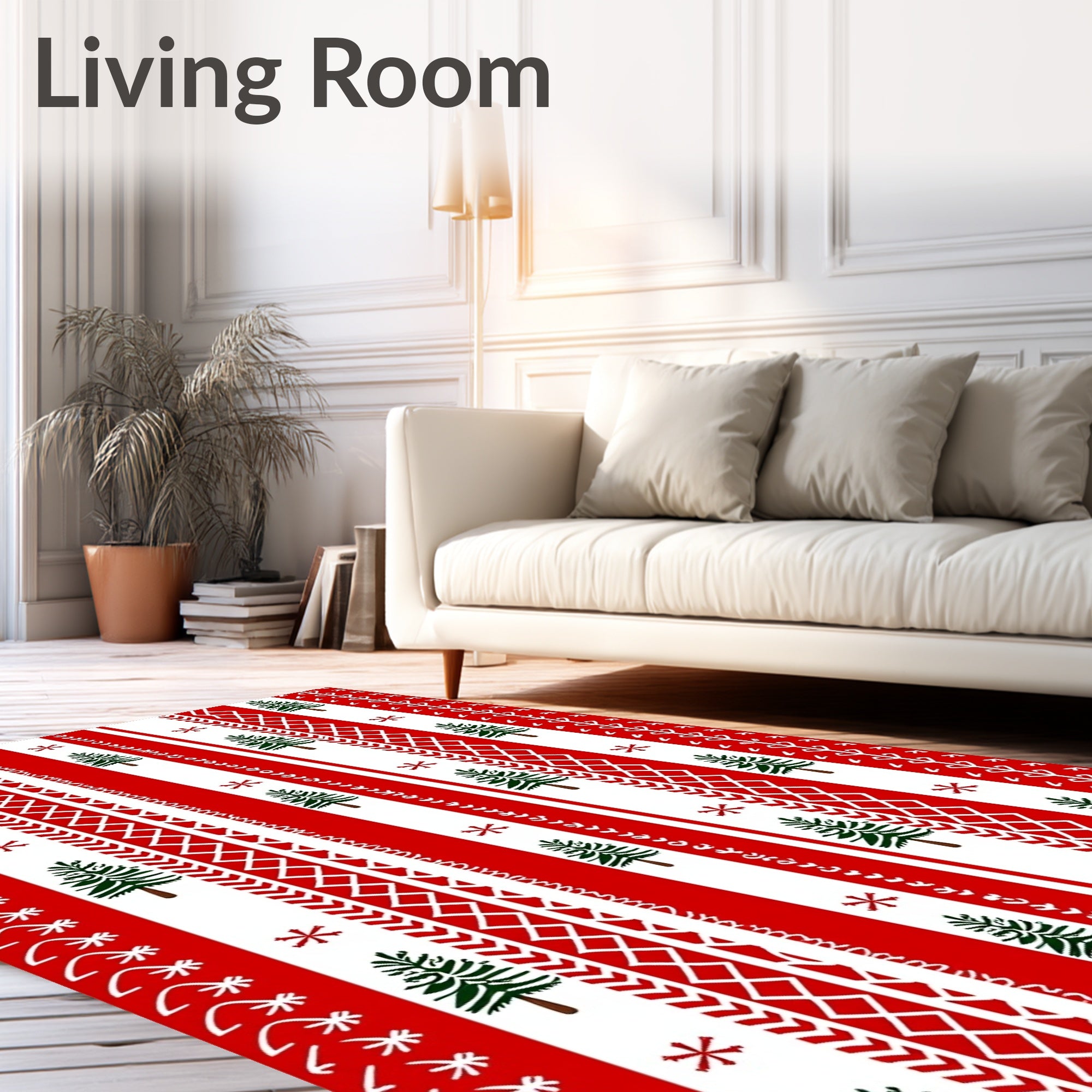 Flatwoven High Traffic Area Rug, Festive Highland Check with Whimsical Pine Sprig Overlay, Non Slip, Stain Resistant, Washable Area Rugs for Living Room, Bedroom (Red) Overview: