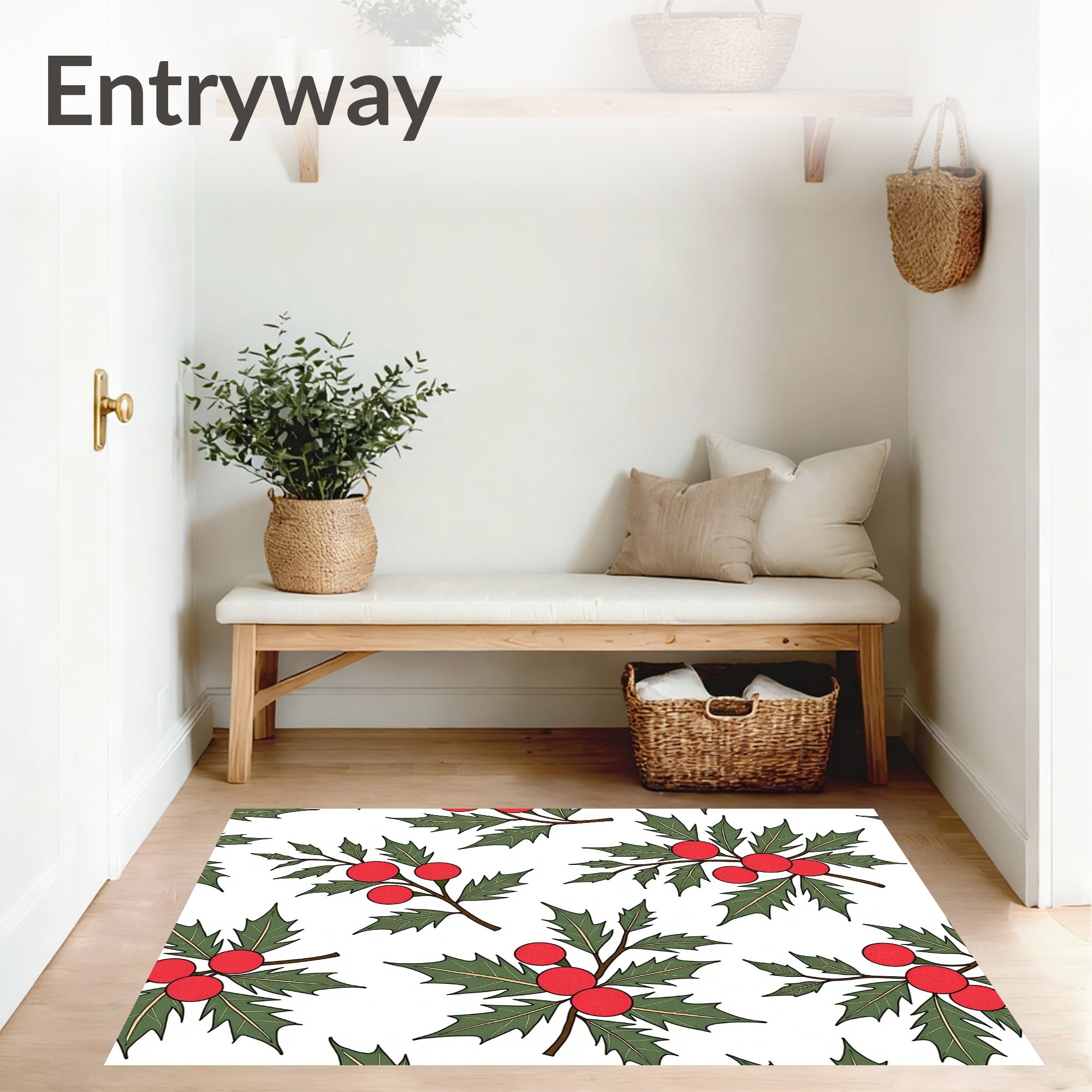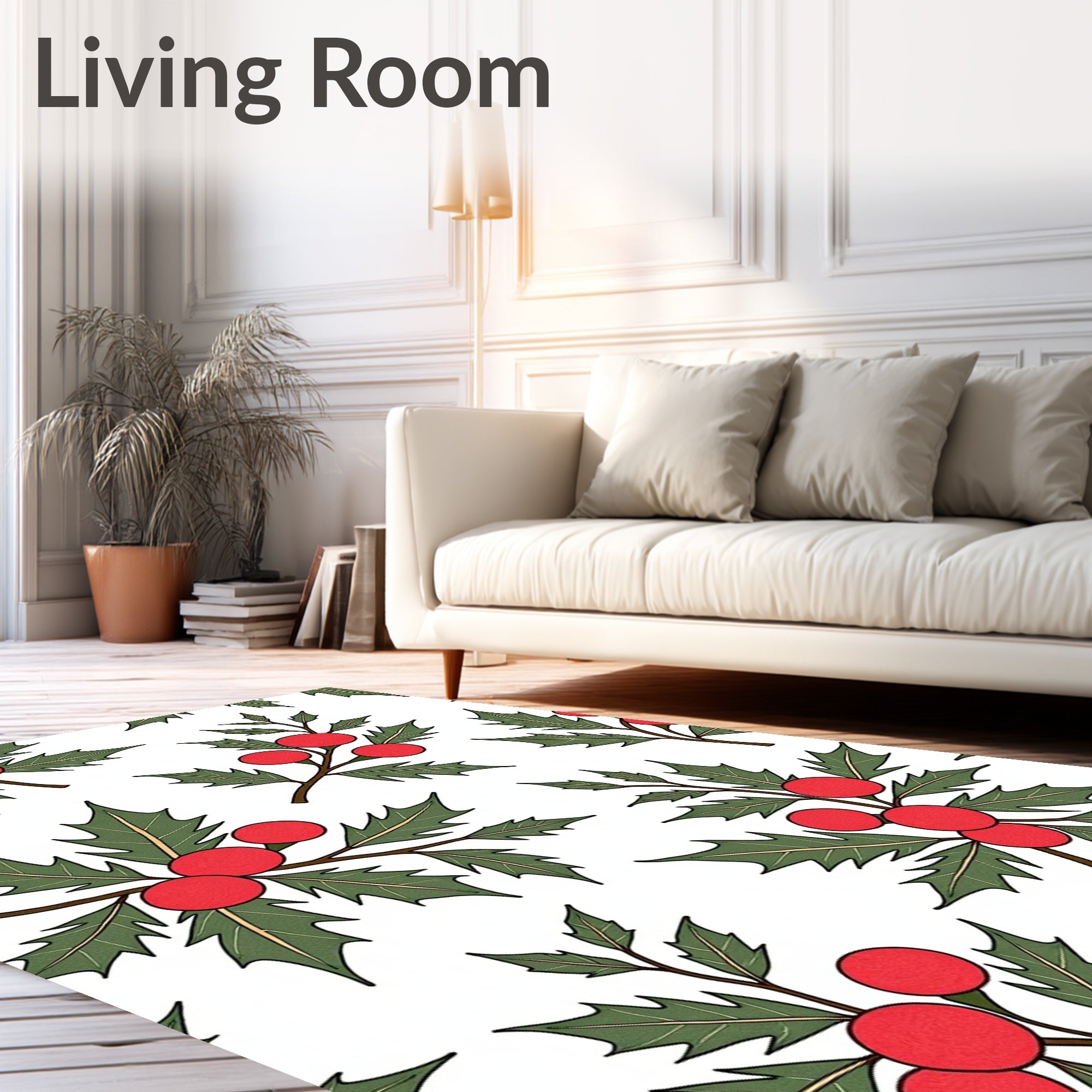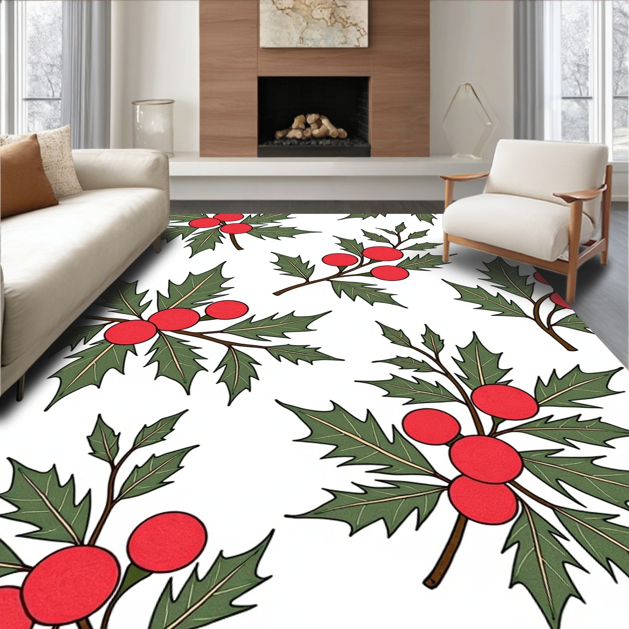 Ultra Soft Area Rug, Non Slip, Stain Resistant, Washable Area Rugs for Living Room, Bedroom, Festive Holly Berries Distressed Vintage Non Slip(Red) Overview: