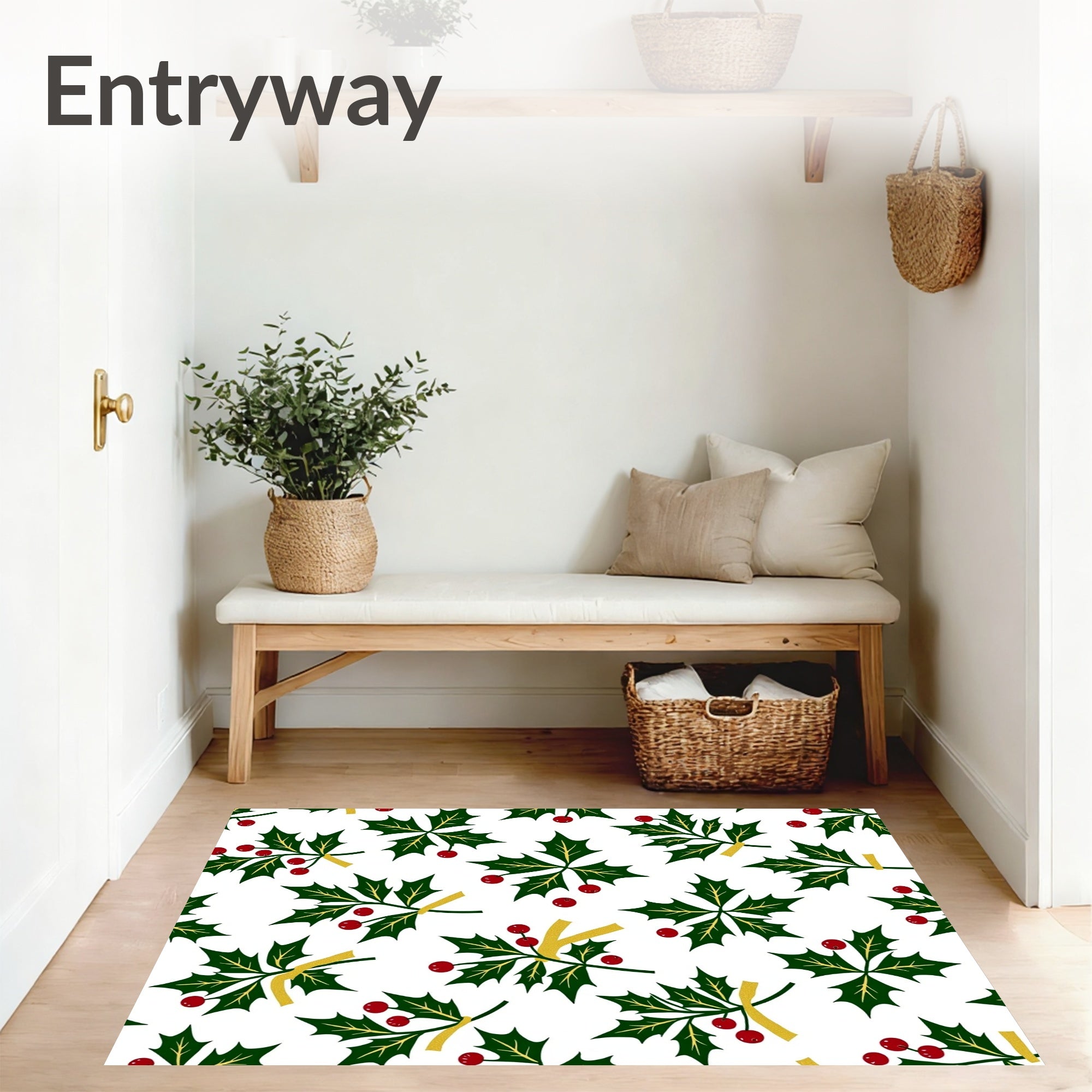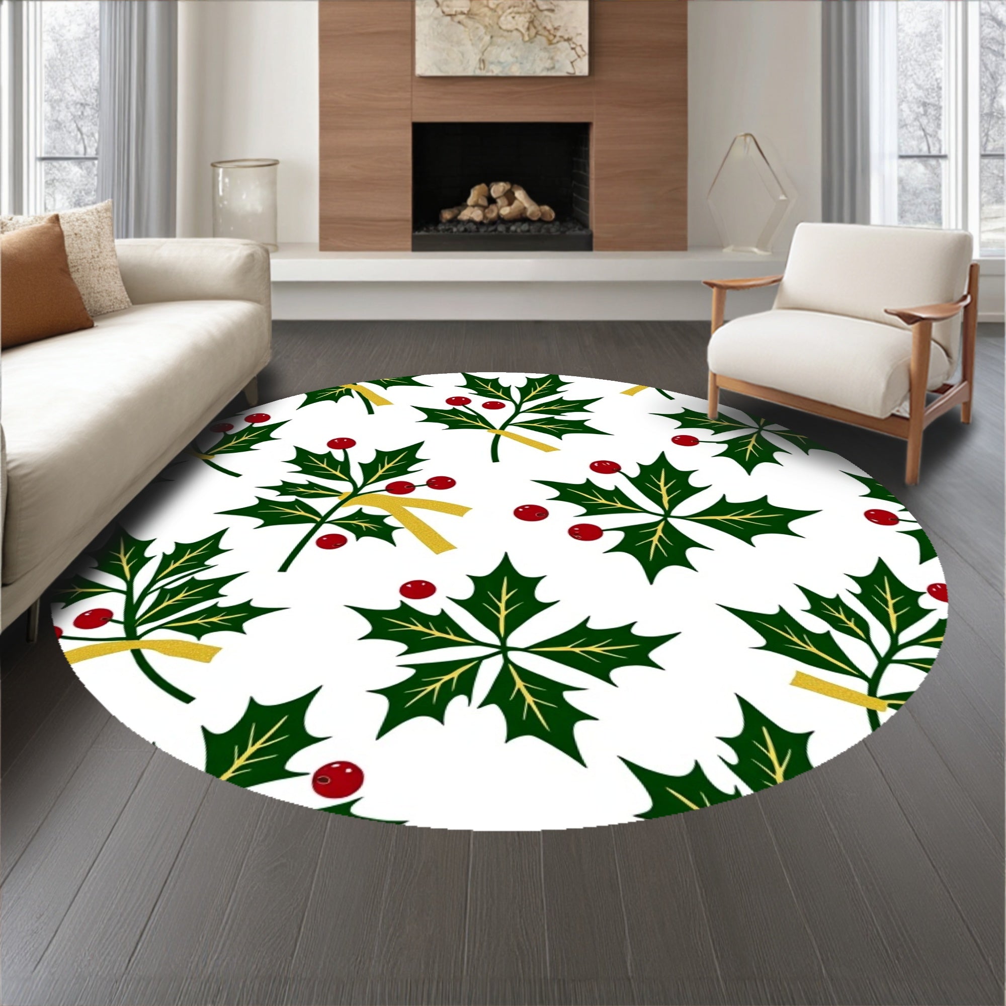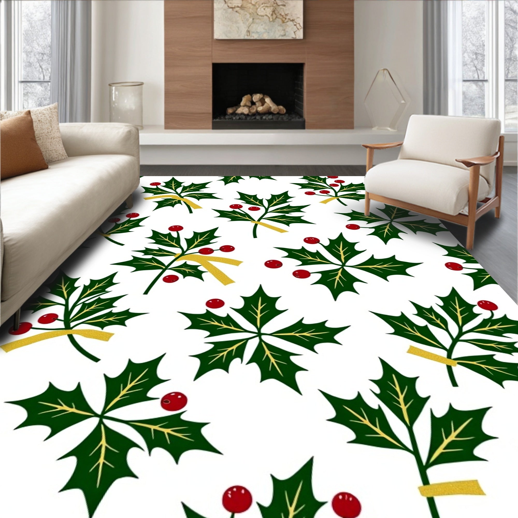 Ultra Soft Area Rug, Non Slip, Stain Resistant, Washable Area Rugs for Living Room, Bedroom, Festive Holly Berry Wreath Decorative Area Christmas Holiday(Green) Overview: