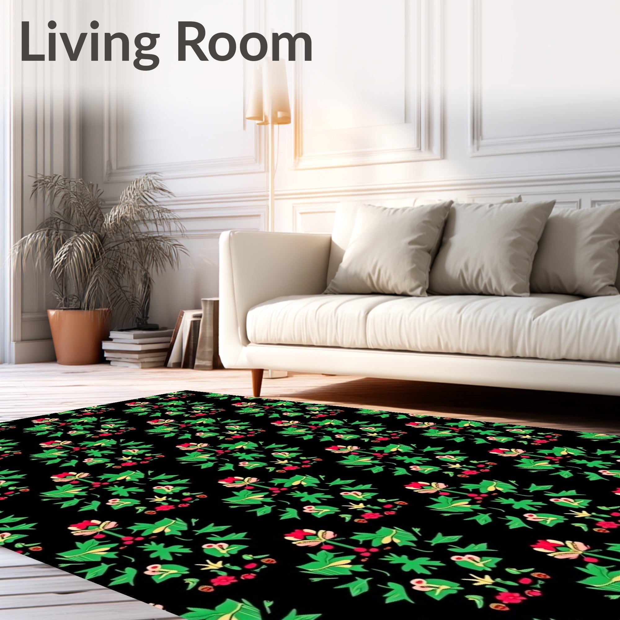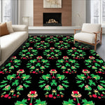 Ultra Soft Area Rug, Non Slip, Stain Resistant, Washable Area Rugs for Living Room, Bedroom, Festive Holly Wreath Area with Traditional Motifs(Black) Overview: