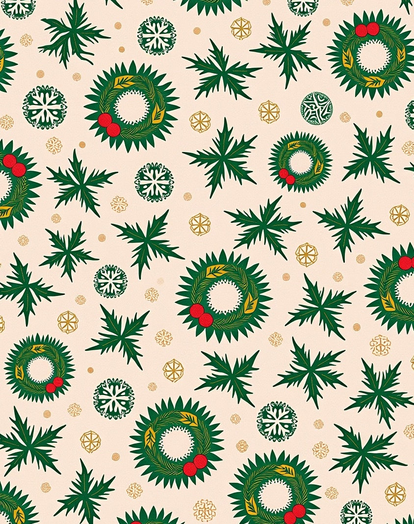 Festive Holly Wreath with Snowflake Motifs Holiday Celebration(Beige)