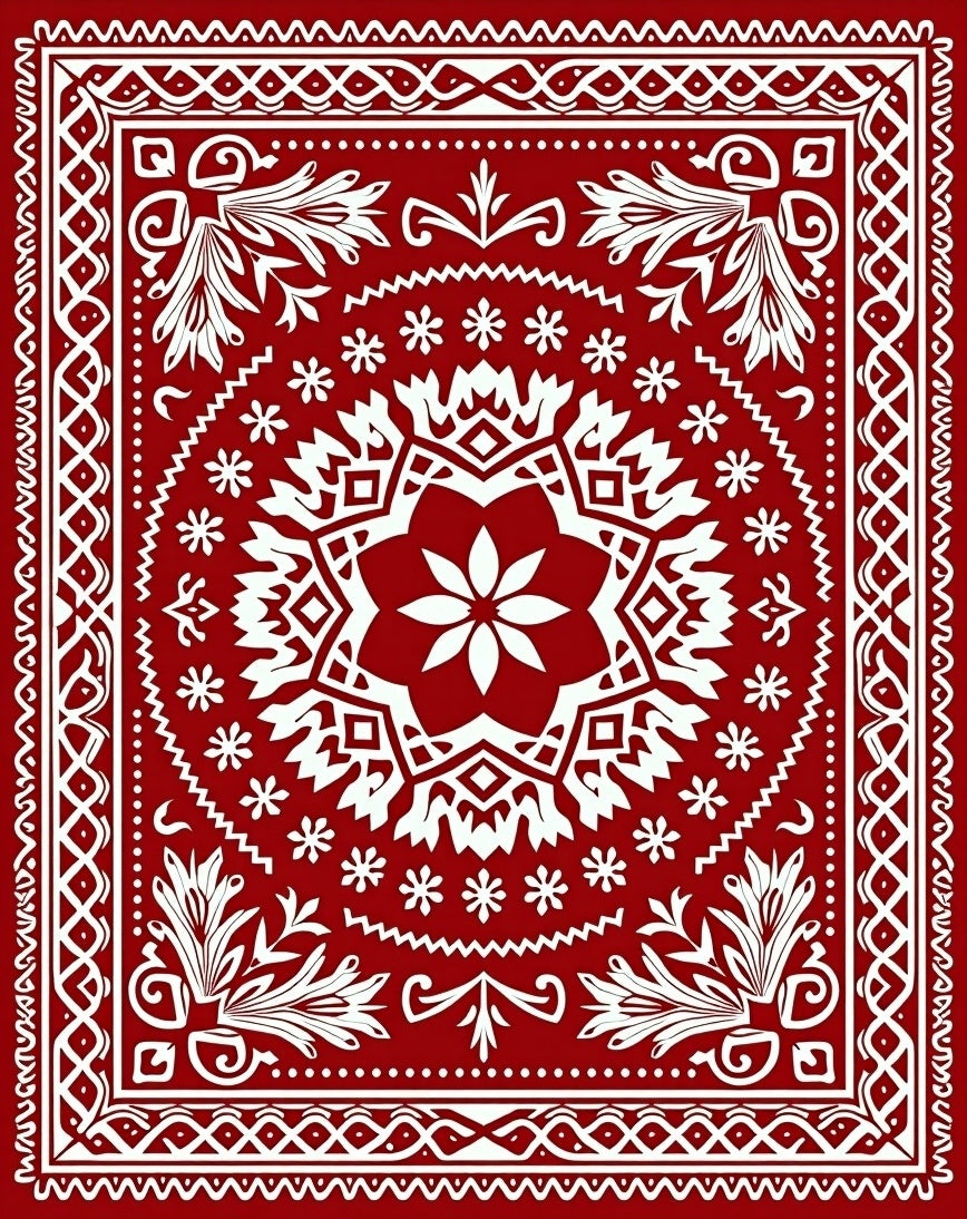 Festive Interlocking Snowflake Medallion with Nordic Starburst Motif(Red)