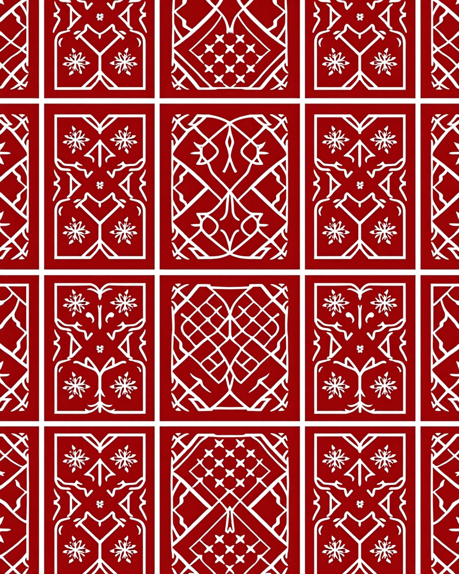 Festive Nordic Snowflake Trellis Modern Holiday Motif(Red)