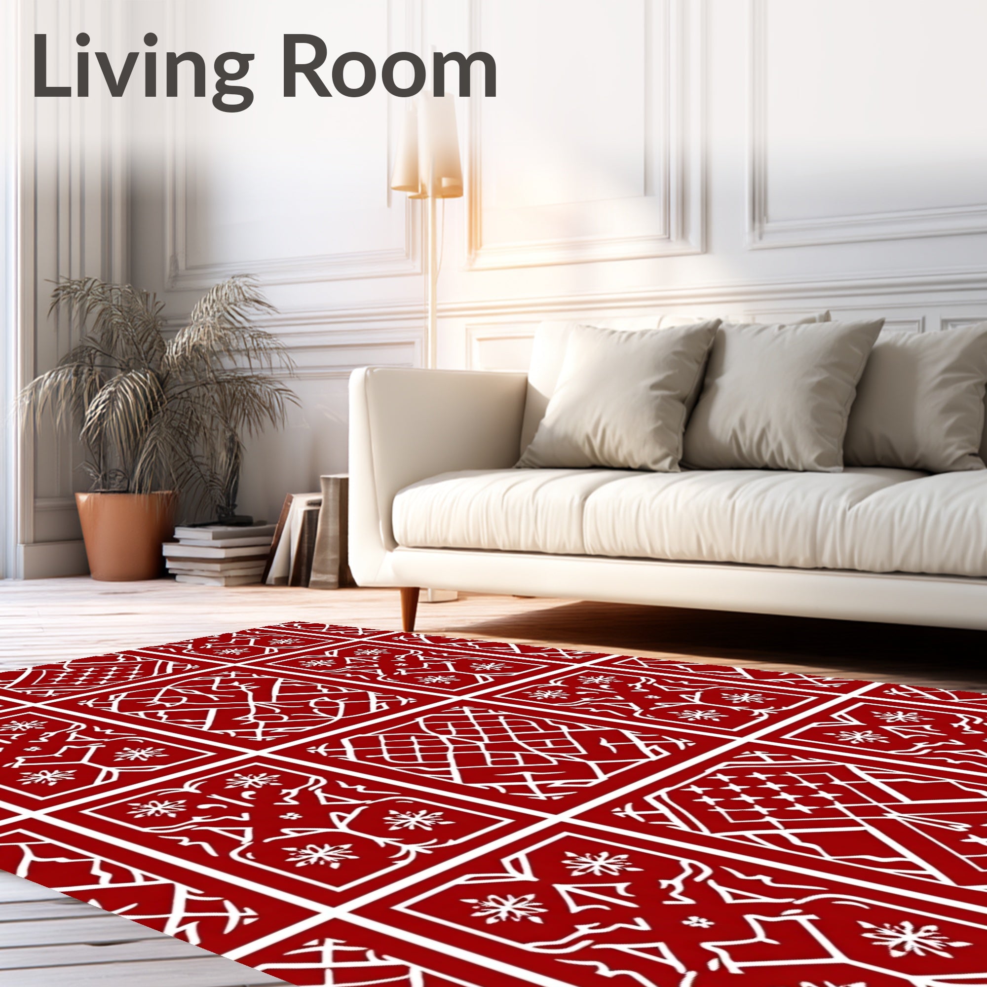 Ultra Soft Area Rug, Non Slip, Stain Resistant, Washable Area Rugs for Living Room, Bedroom, Festive Nordic Snowflake Trellis Modern Holiday Motif(Red) Overview:
