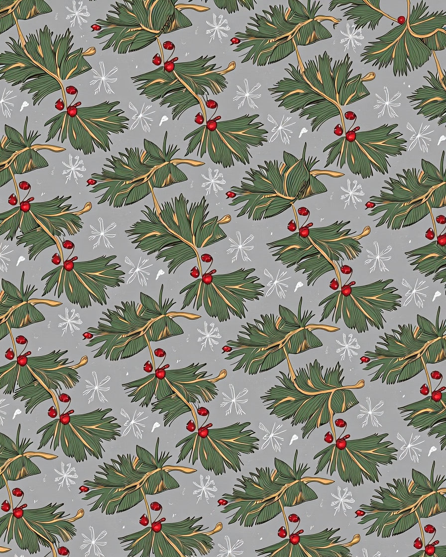 Festive Pine Wreath Motif with Berries and Delicate Snowflake Accents(Green)