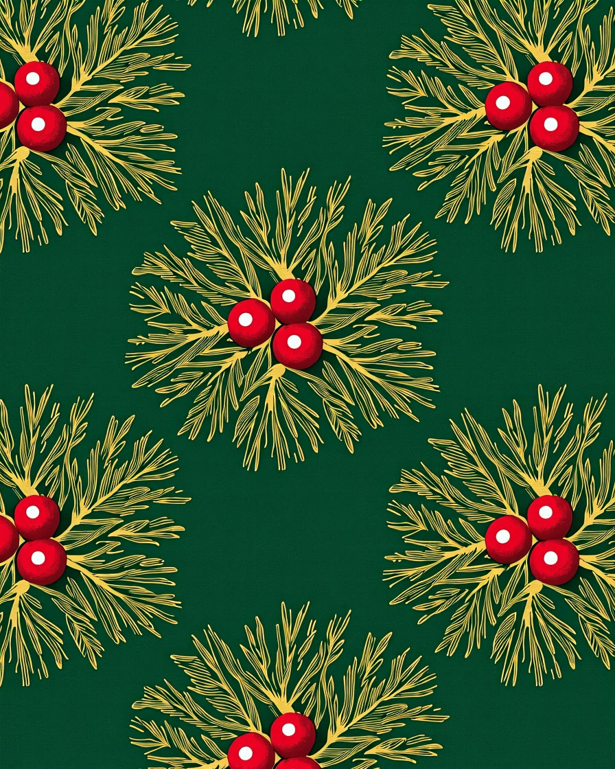 Festive Pine Wreath with Ribbon and Berry Motifs(Green)