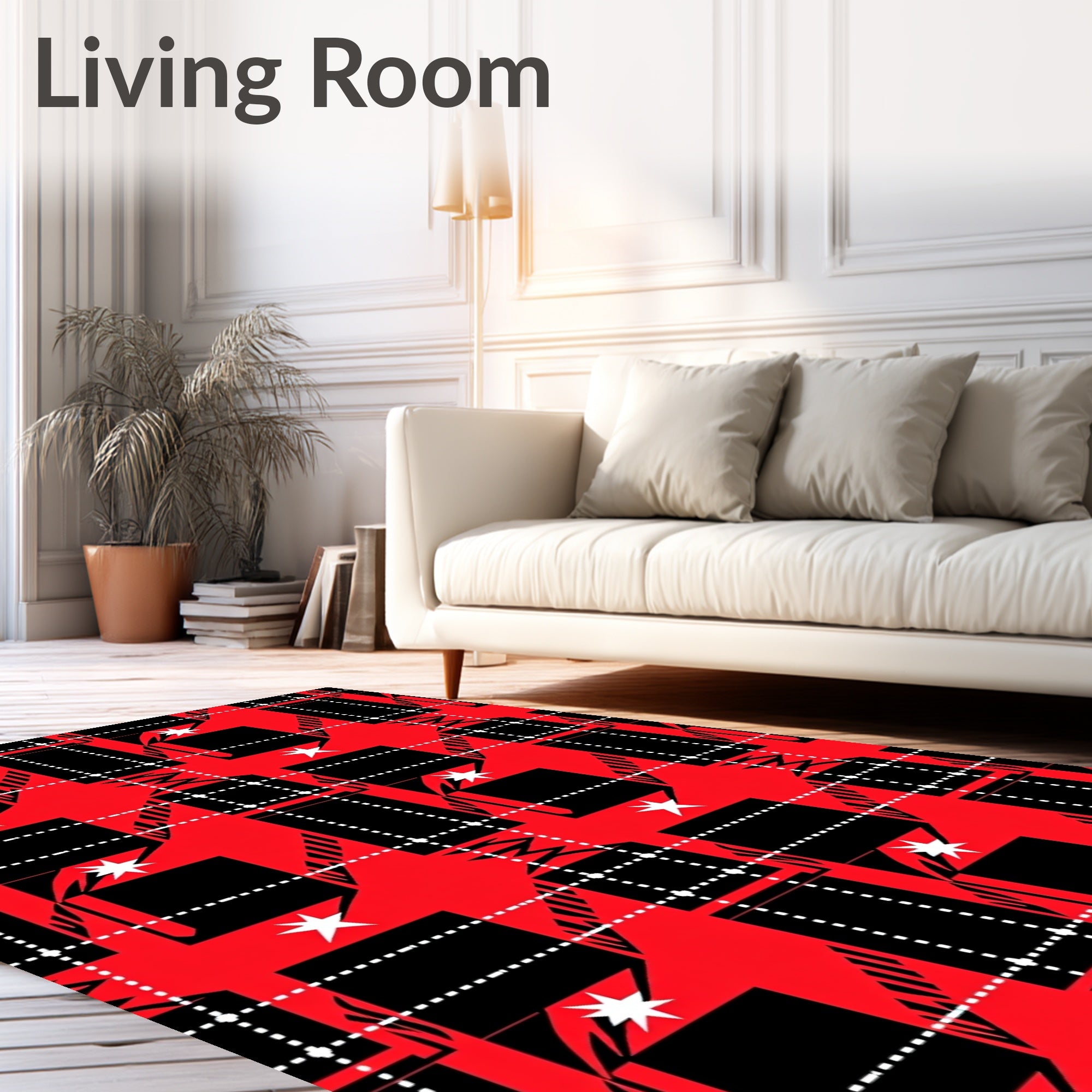Flatwoven High Traffic Area Rug, Festive Plaid Checkered Stars Winter Style, Non Slip, Stain Resistant, Washable Area Rugs for Living Room, Bedroom (Red) Overview: