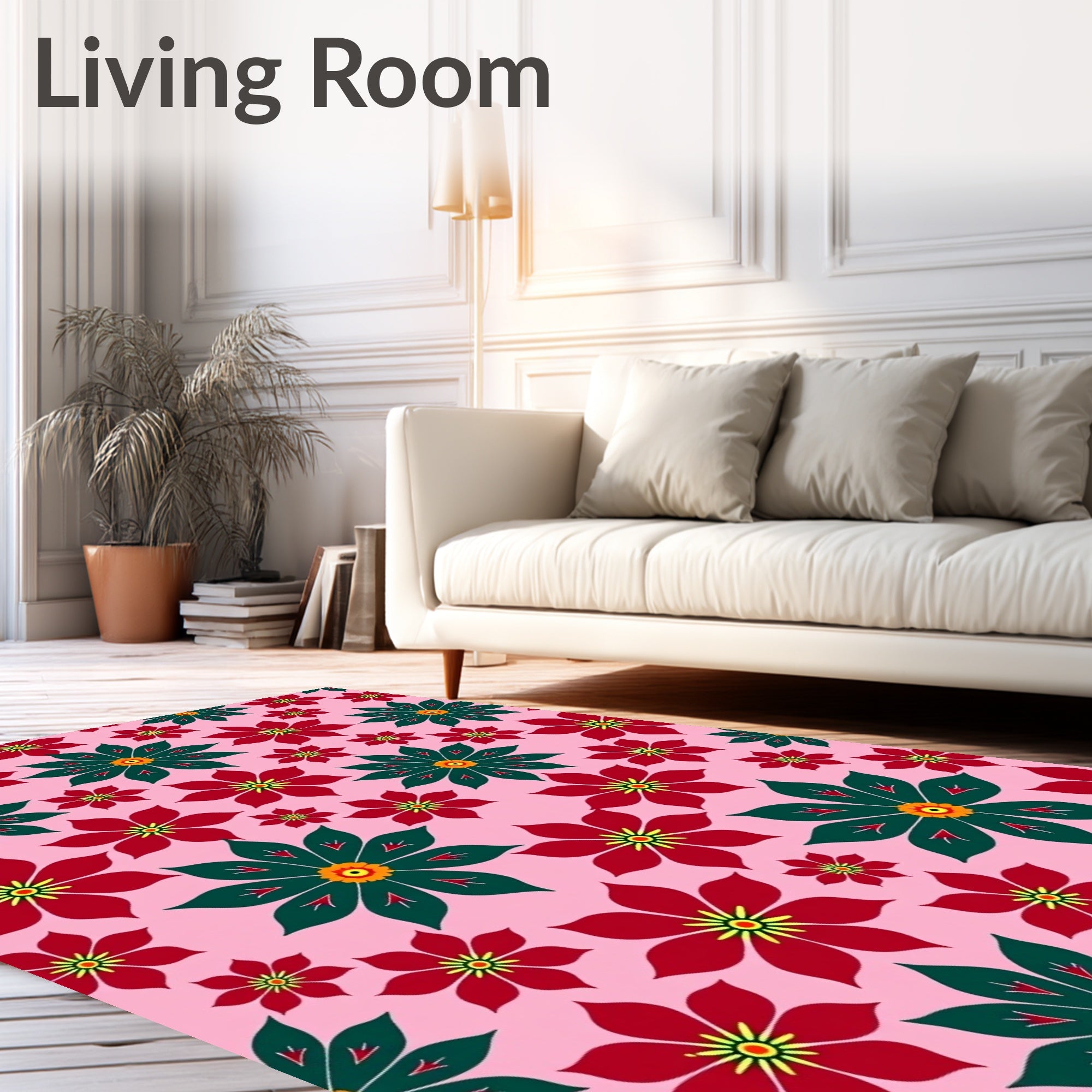 Flatwoven High Traffic Area Rug, Festive Poinsettia Bloom Design Boho Style Decorative Floor Covering, Non Slip, Stain Resistant, Washable Area Rugs for Living Room, Bedroom (Pink) Overview: