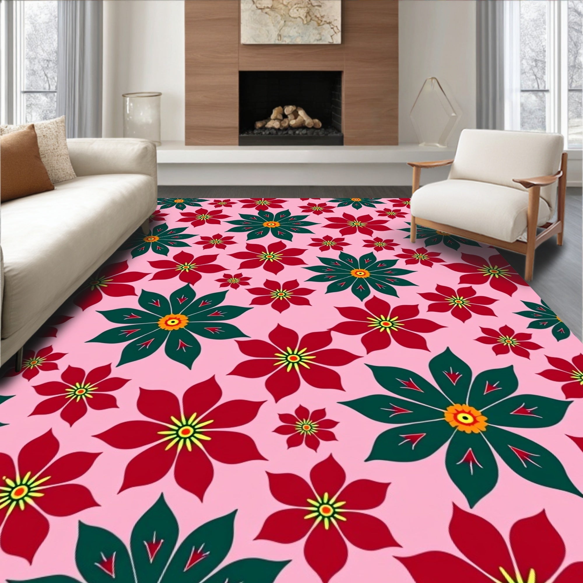 Festive Poinsettia Bloom Design Boho Style Decorative Floor Covering(Pink)