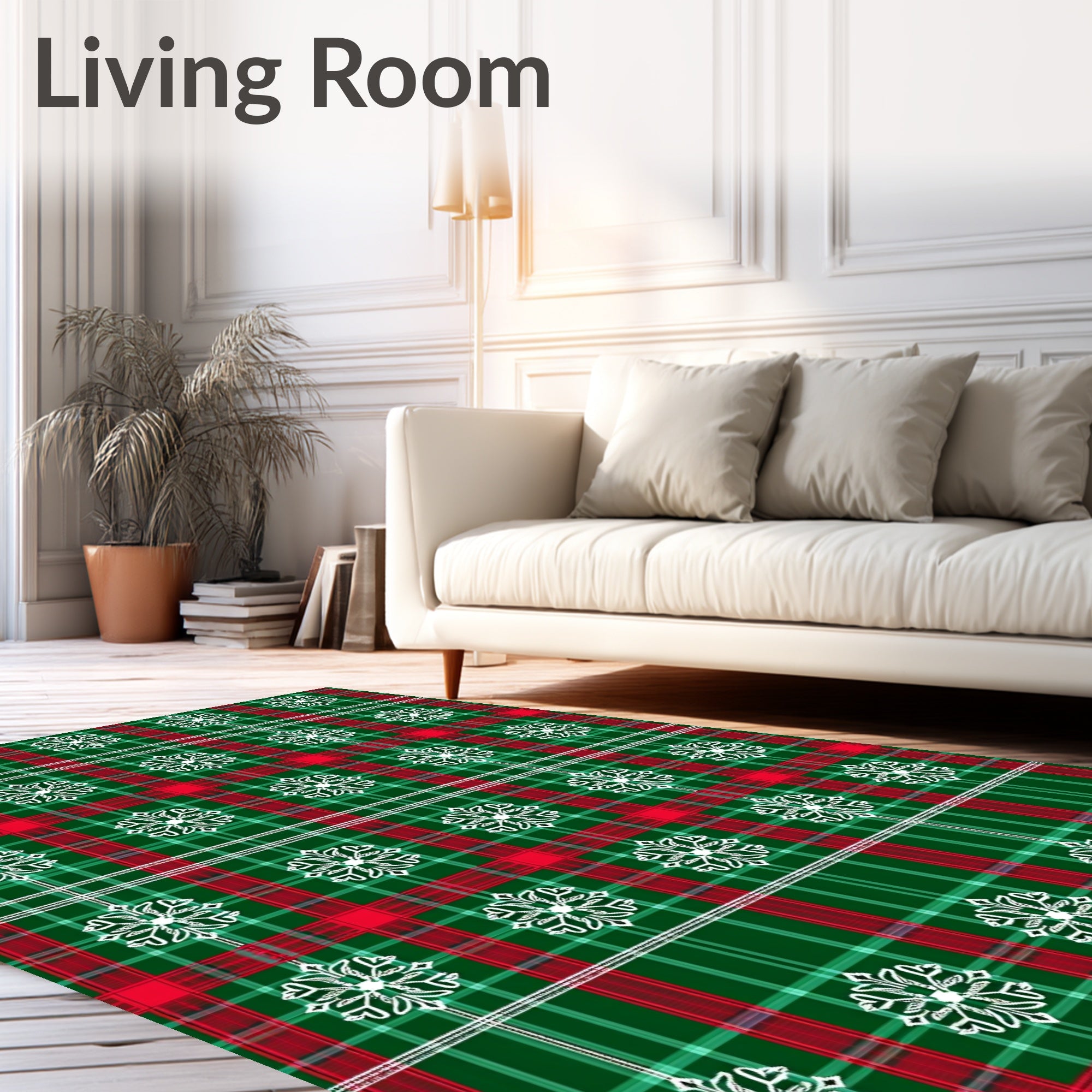 Ultra Soft Area Rug, Non Slip, Stain Resistant, Washable Area Rugs for Living Room, Bedroom, Festive Snowflake Plaid Holiday Pathway Accent(Green) Overview: