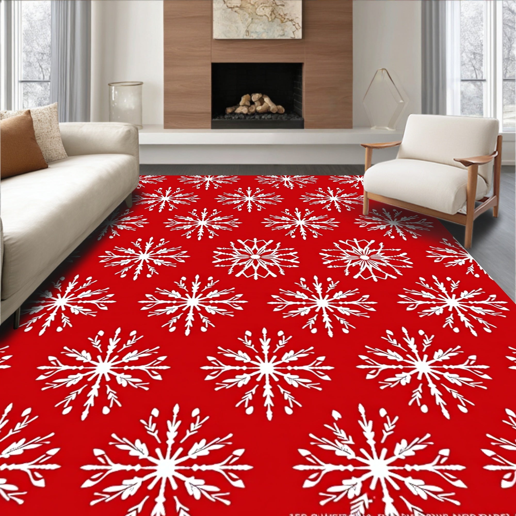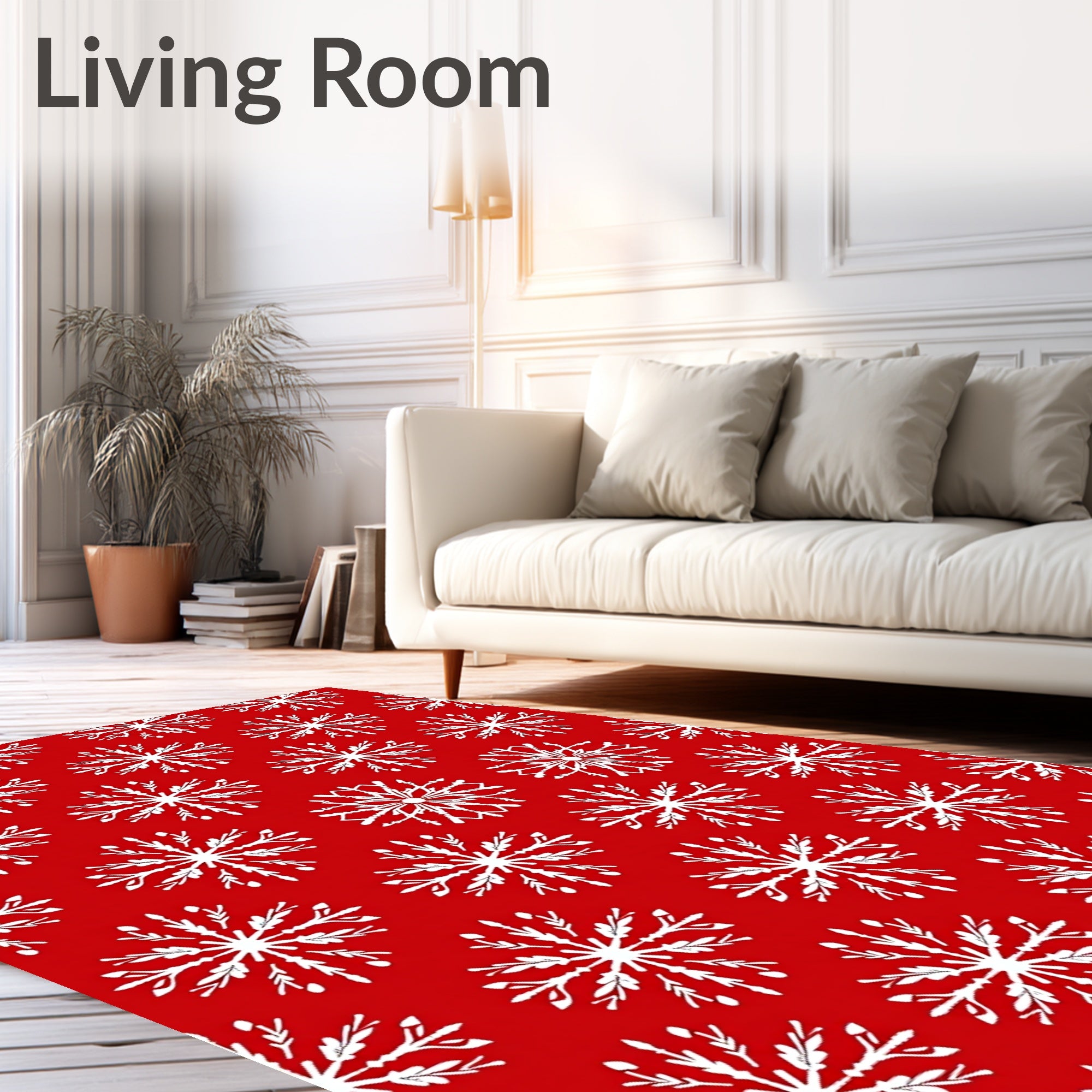 Ultra Soft Area Rug, Non Slip, Stain Resistant, Washable Area Rugs for Living Room, Bedroom, Festive Snowflake Wonderland Plush Decorative Holiday Accent(Red) Overview: