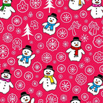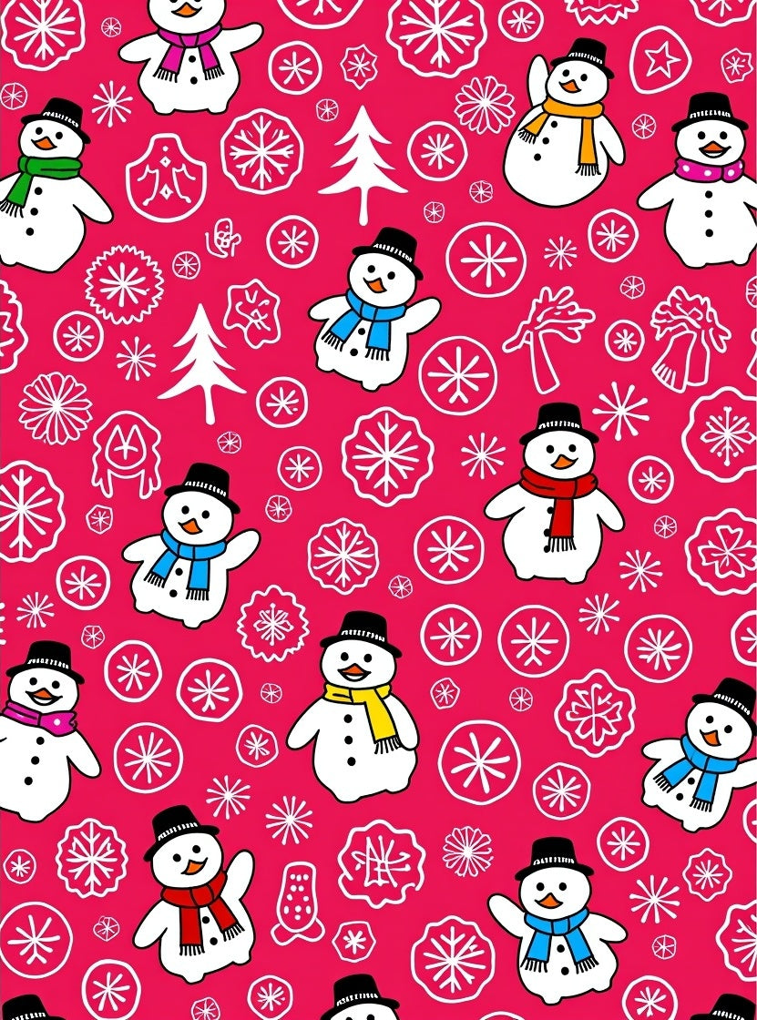 Festive Snowman Gathering with Whimsical Pine Forest and Falling Snowflakes(Pink)