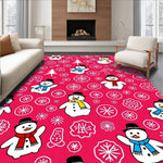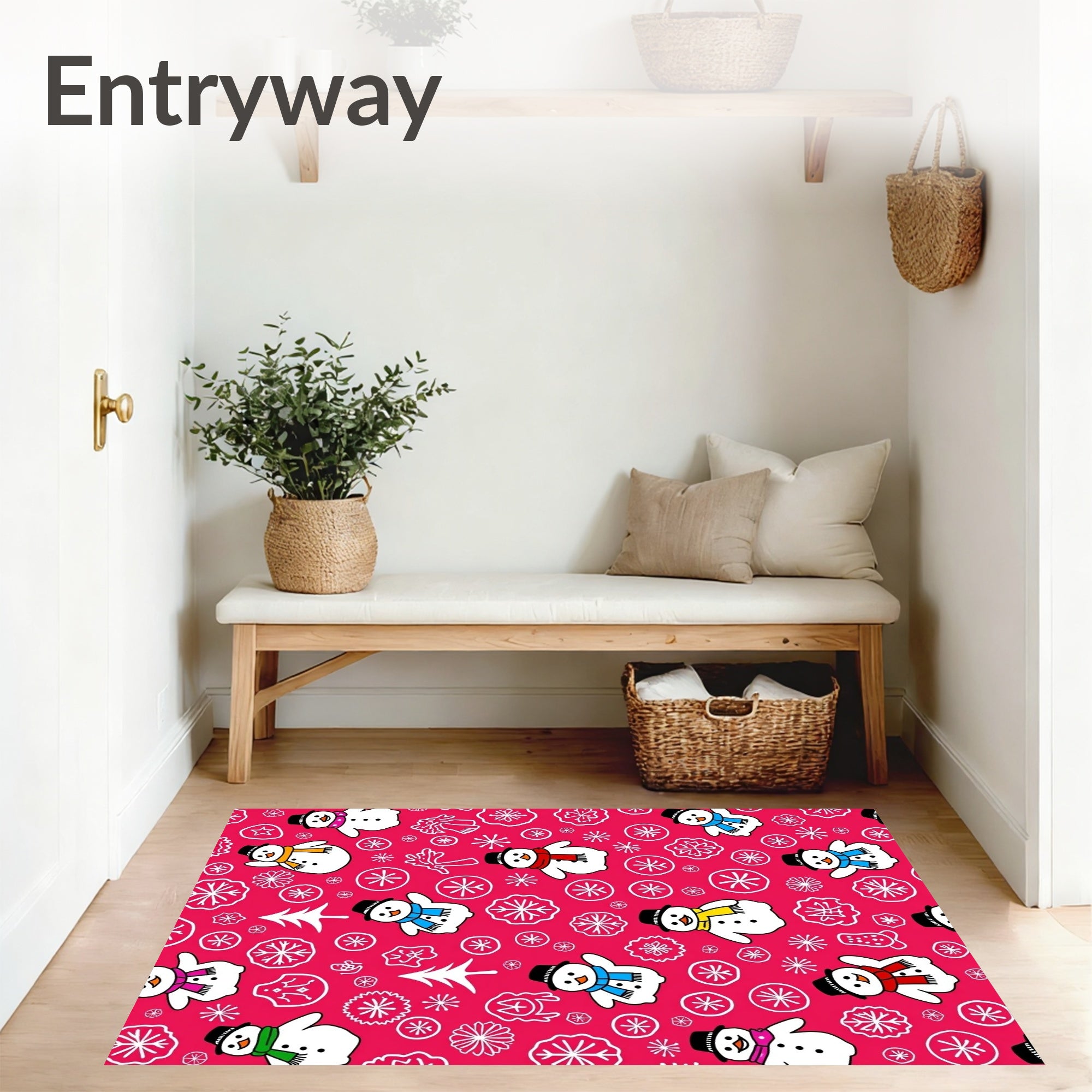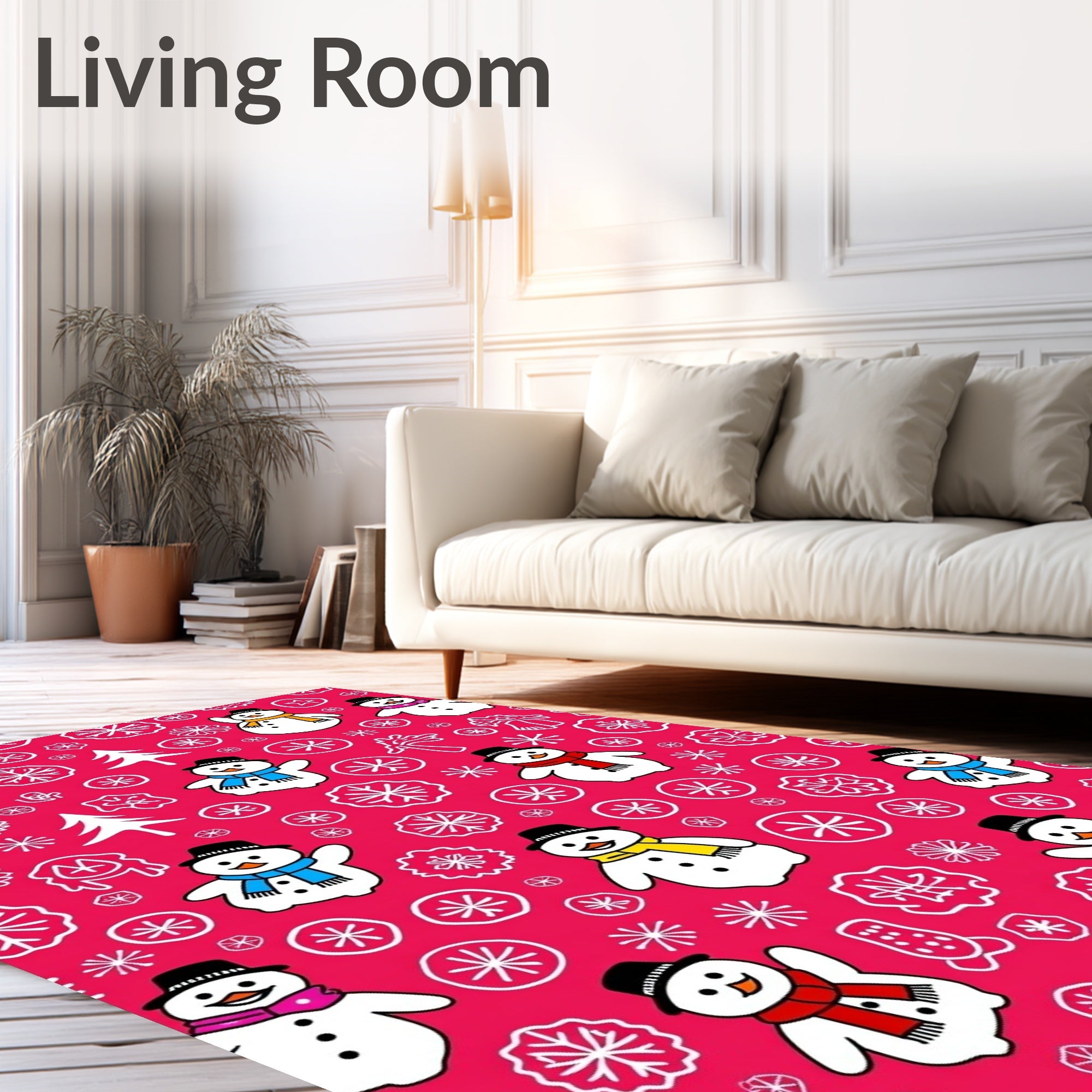 Ultra Soft Area Rug, Non Slip, Stain Resistant, Washable Area Rugs for Living Room, Bedroom, Festive Snowman Gathering with Whimsical Pine Forest and Falling Snowflakes(Pink) Overview: