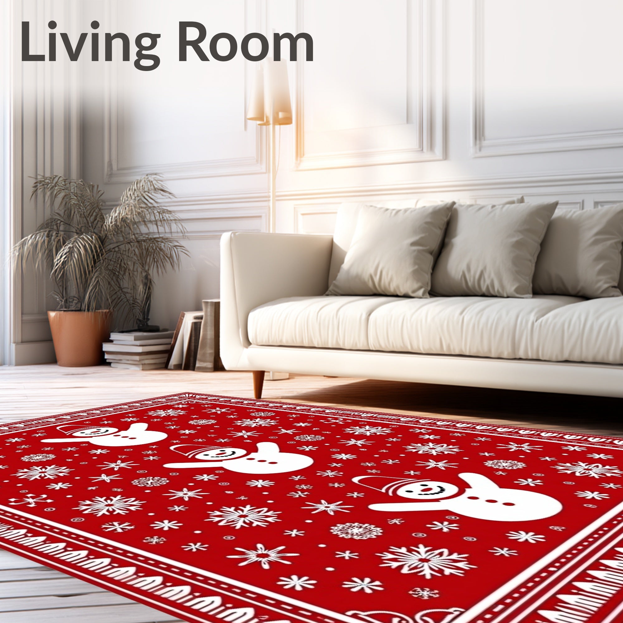 Ultra Soft Area Rug, Non Slip, Stain Resistant, Washable Area Rugs for Living Room, Bedroom, Festive Snowman Holiday Welcome Semi Circle Entrance(Red) Overview: