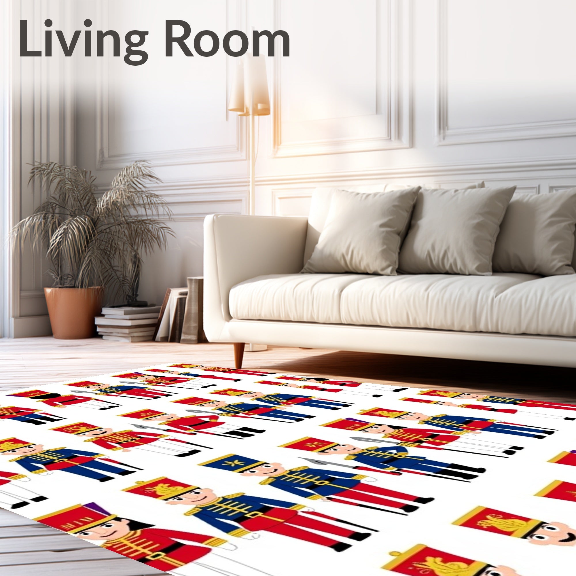 Ultra Soft Area Rug, Non Slip, Stain Resistant, Washable Area Rugs for Living Room, Bedroom, Festive Soldier Guard Motif Decorative Floor Covering(Red) Overview: