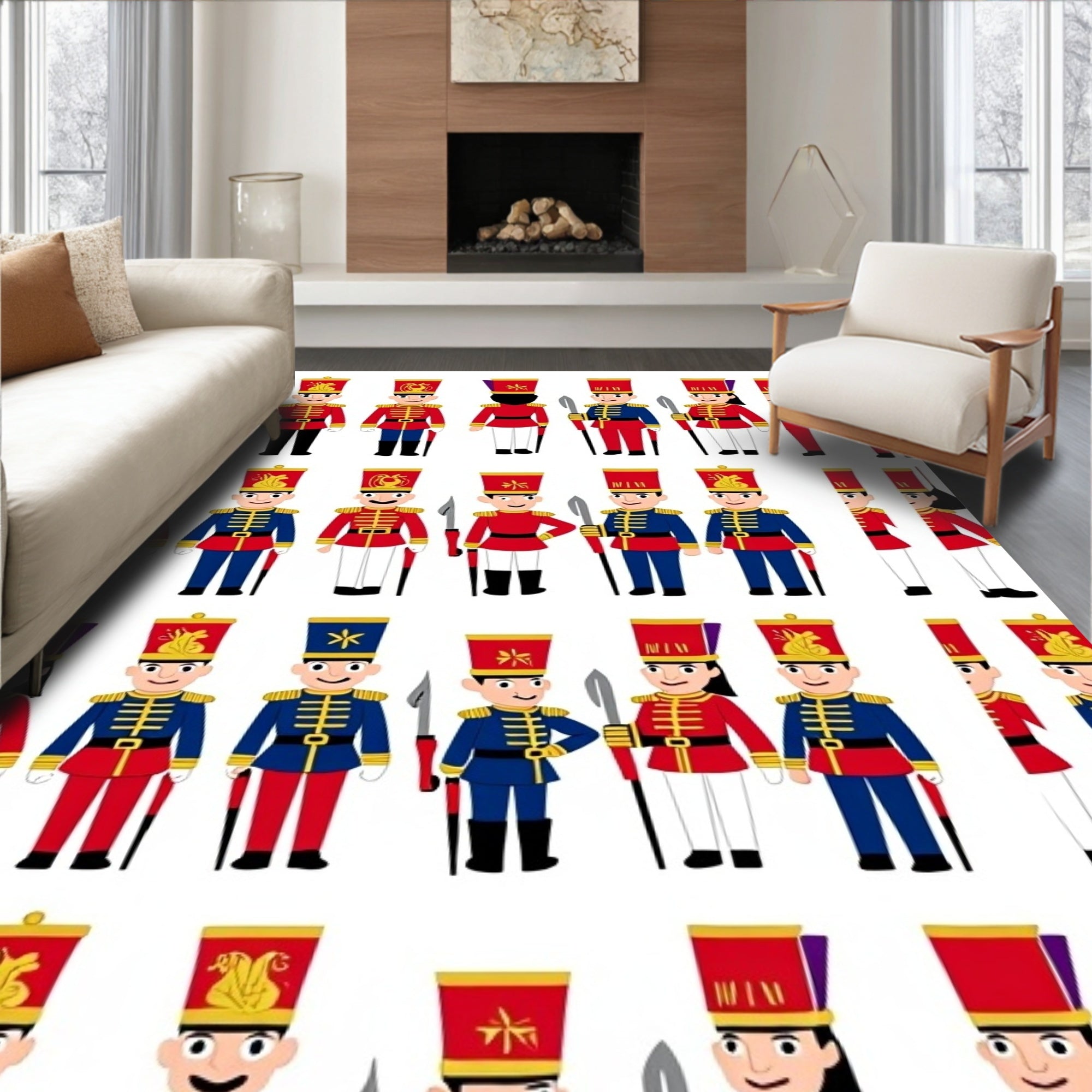 Festive Soldier Guard Motif Decorative Floor Covering(Red)