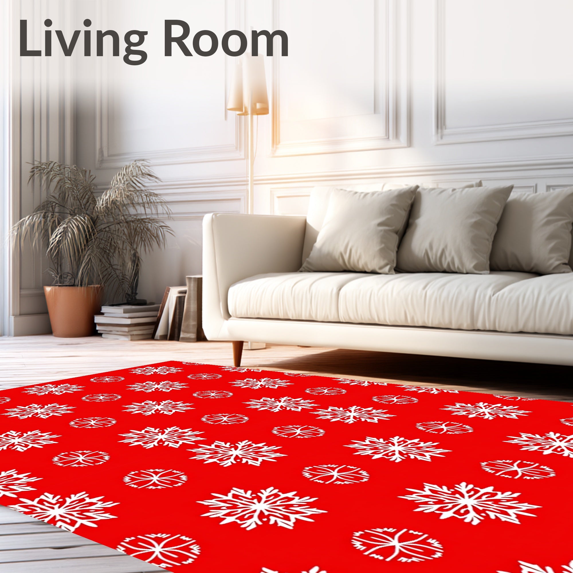 Ultra Soft Area Rug, Non Slip, Stain Resistant, Washable Area Rugs for Living Room, Bedroom, Festive Starburst Mosaic with Interlocking Snowflake Motifs(Red) Overview: