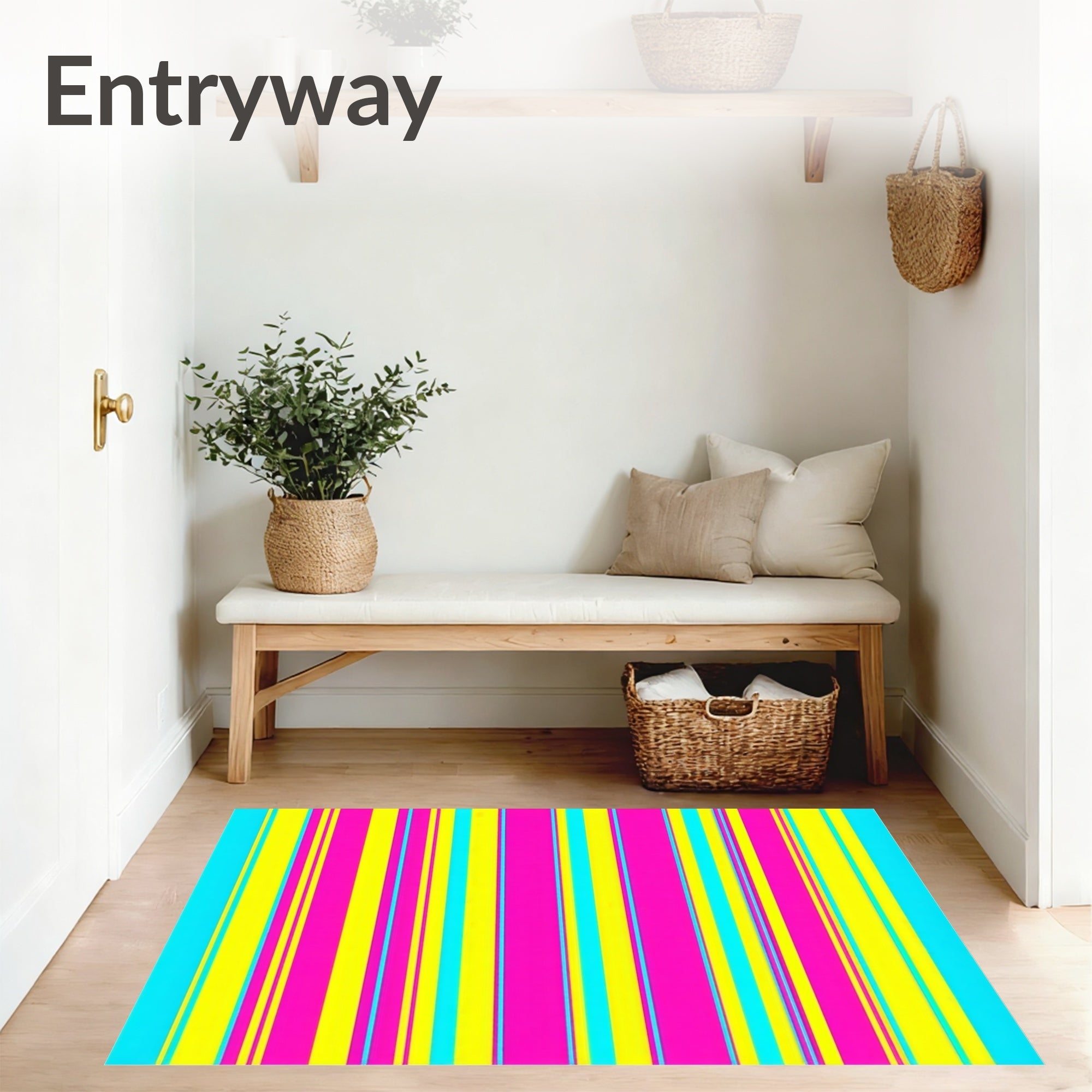 Flatwoven High Traffic Area Rug, Color Stripe for Spaces, Non Slip, Stain Resistant, Washable Area Rugs for Living Room, Bedroom (Yellow) Overview: