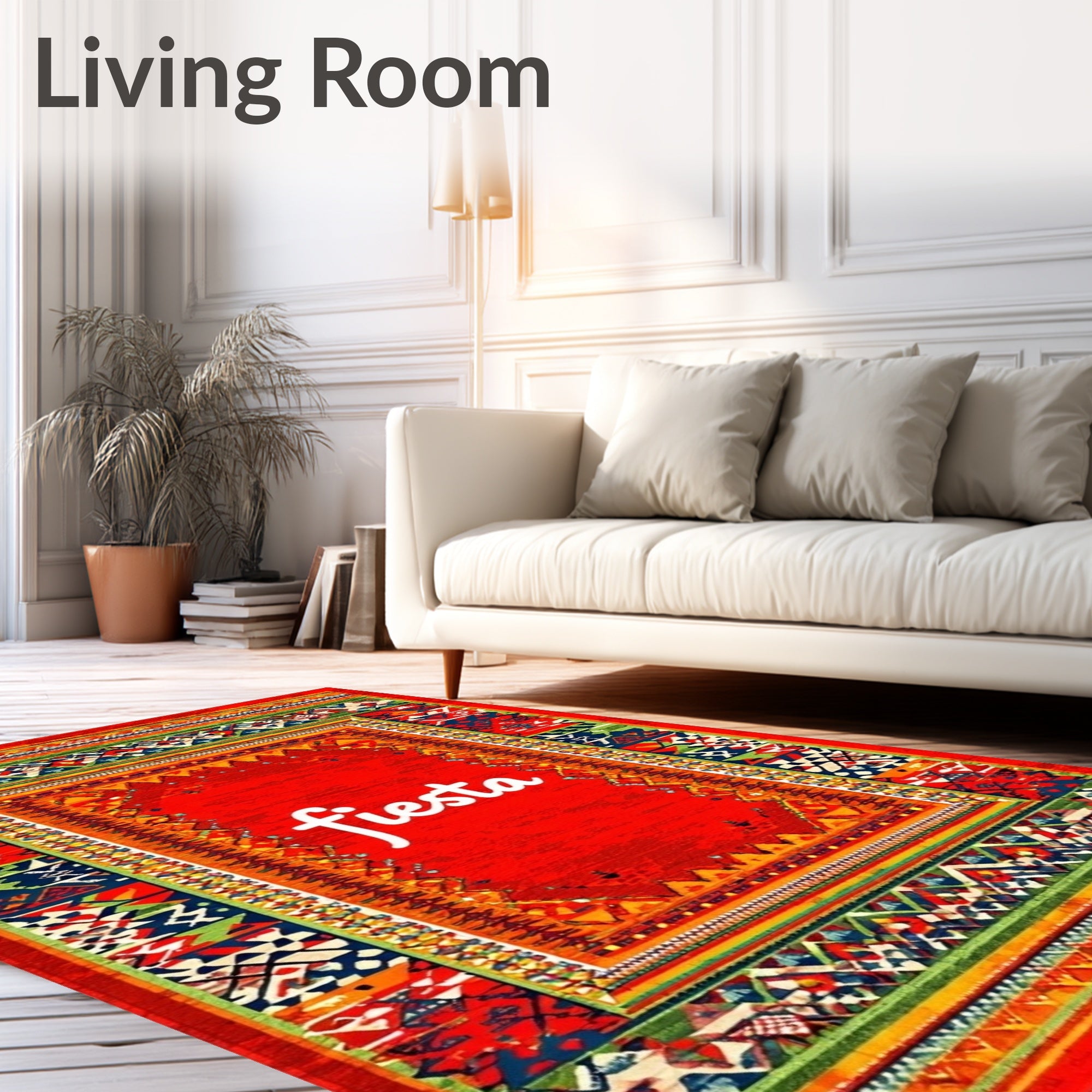 Flatwoven High Traffic Area Rug, Cinco De Mayo Inspired Doormat Design, Non Slip, Stain Resistant, Washable Area Rugs for Living Room, Bedroom (Red) Overview: