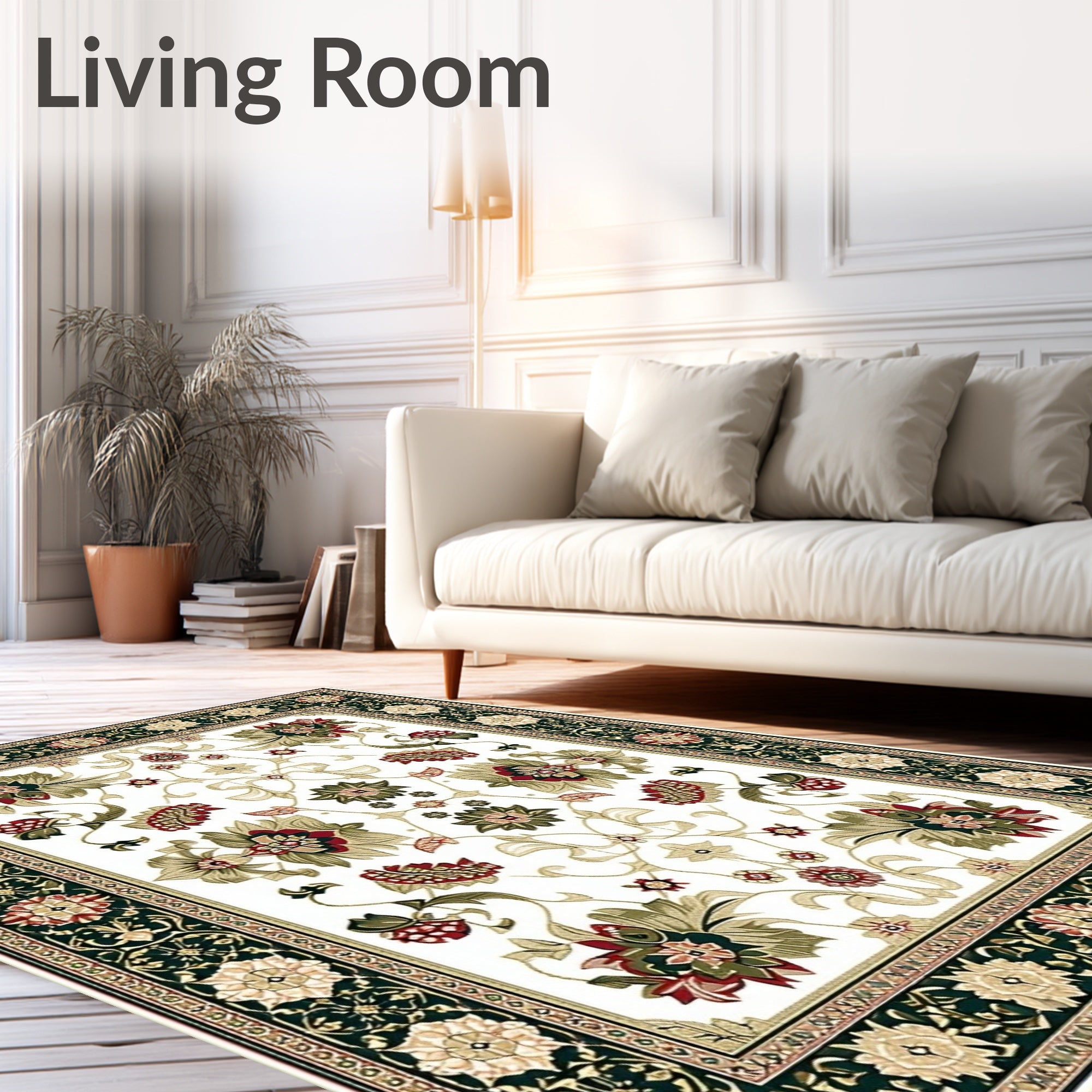 Ultra Soft Area Rug, Non Slip, Stain Resistant, Washable Area Rugs for Living Room, Bedroom, Floral Area with Beige Tones(White) Overview: