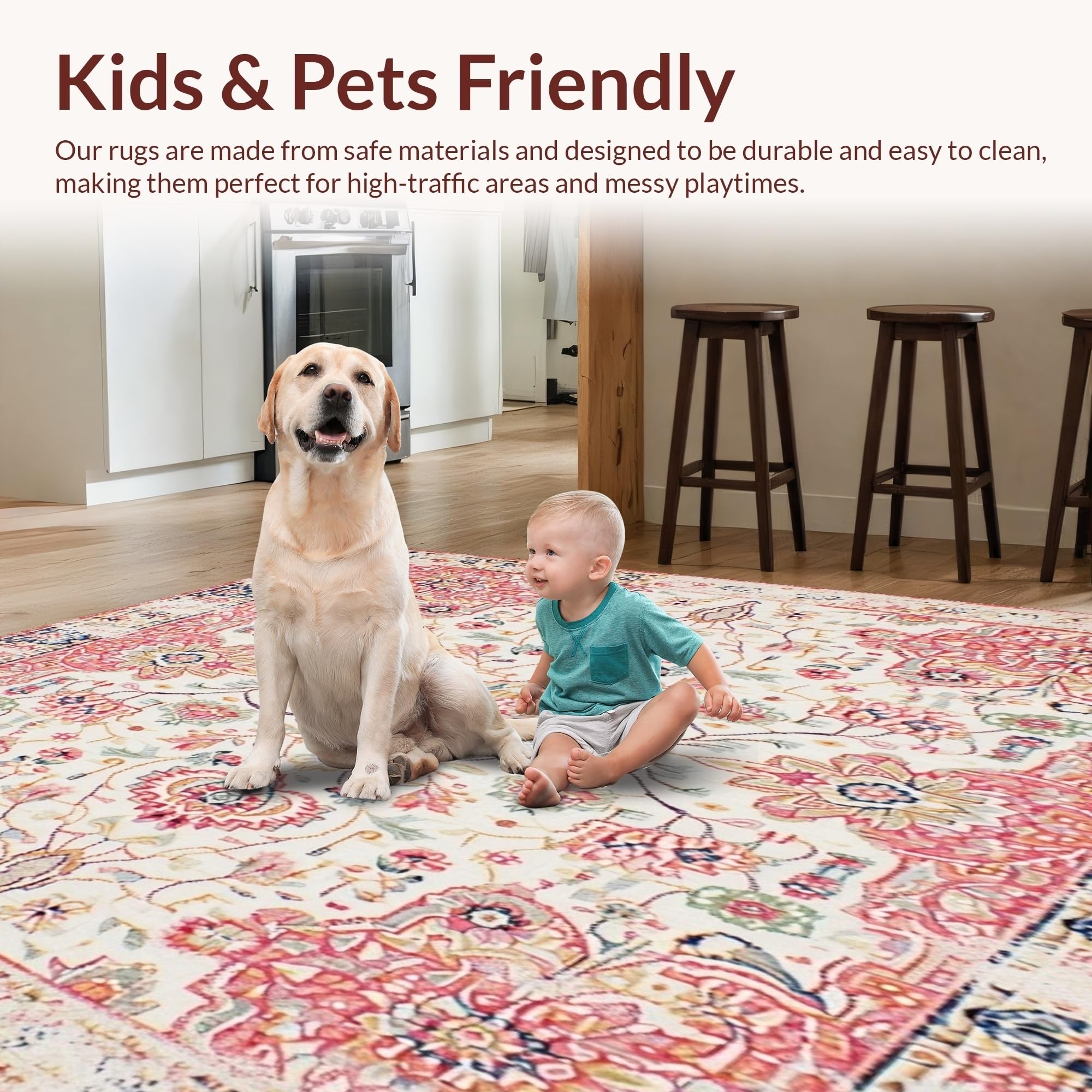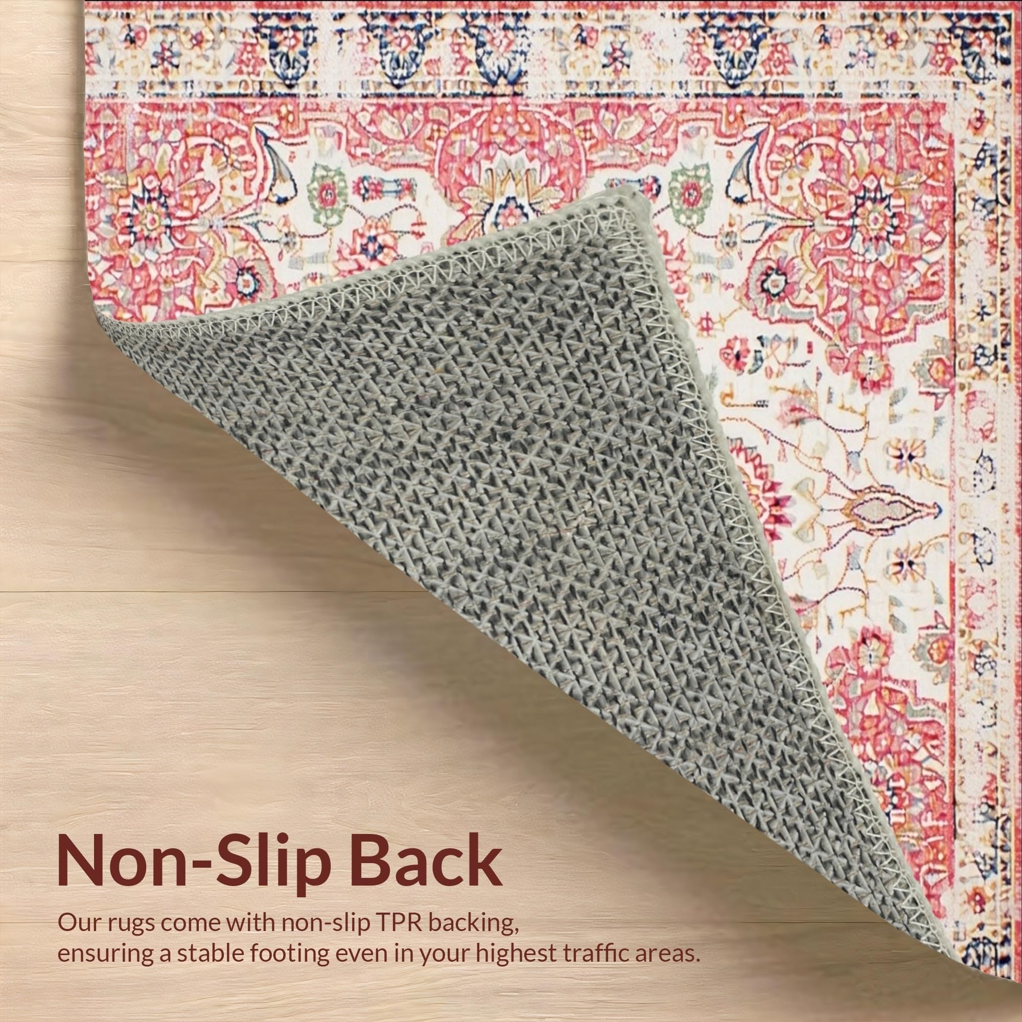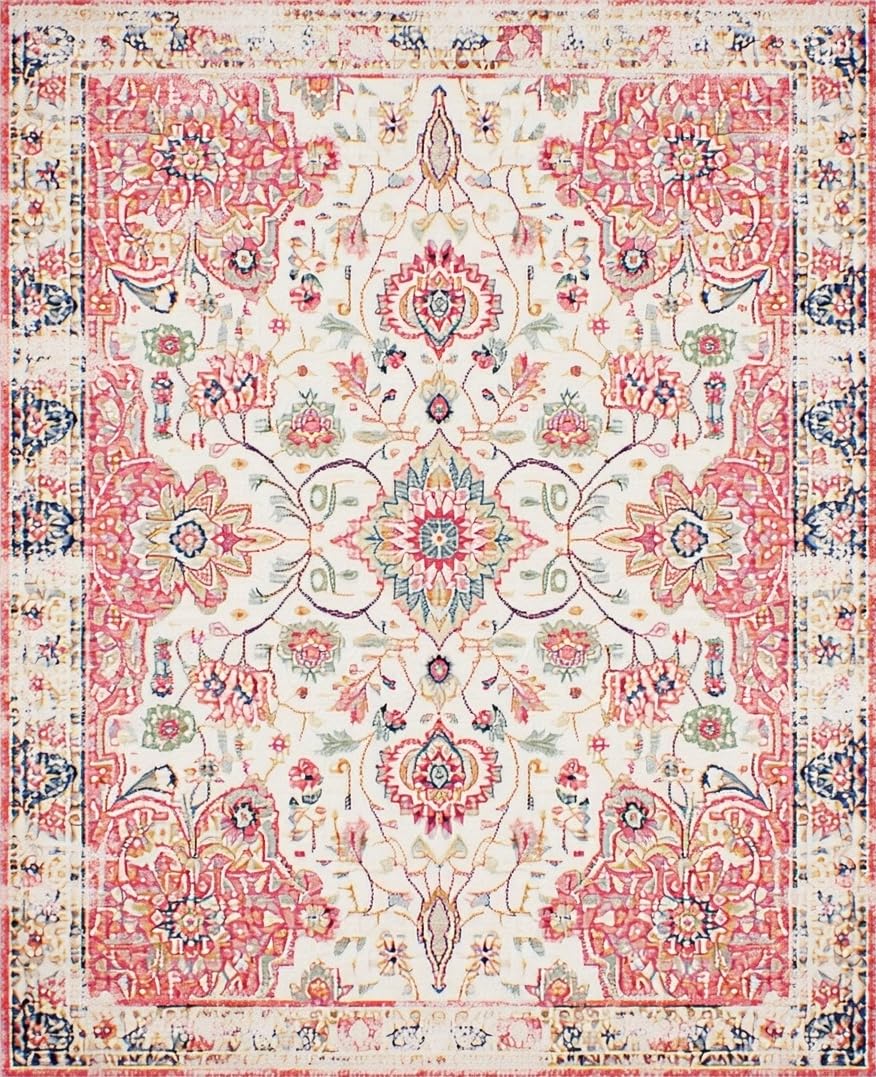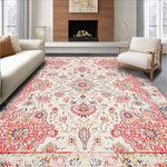 Ultra Soft Area Rug, Non Slip, Stain Resistant, Washable Area Rugs for Living Room, Bedroom, Floral Boho Area Beige & Dusty Rose(Beige) Overview: