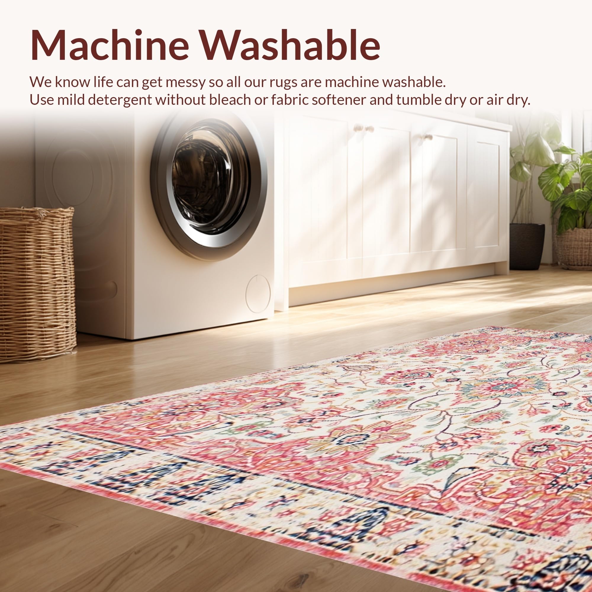 - Machine Washable: Our rugs can be easily thrown in the wash machine.