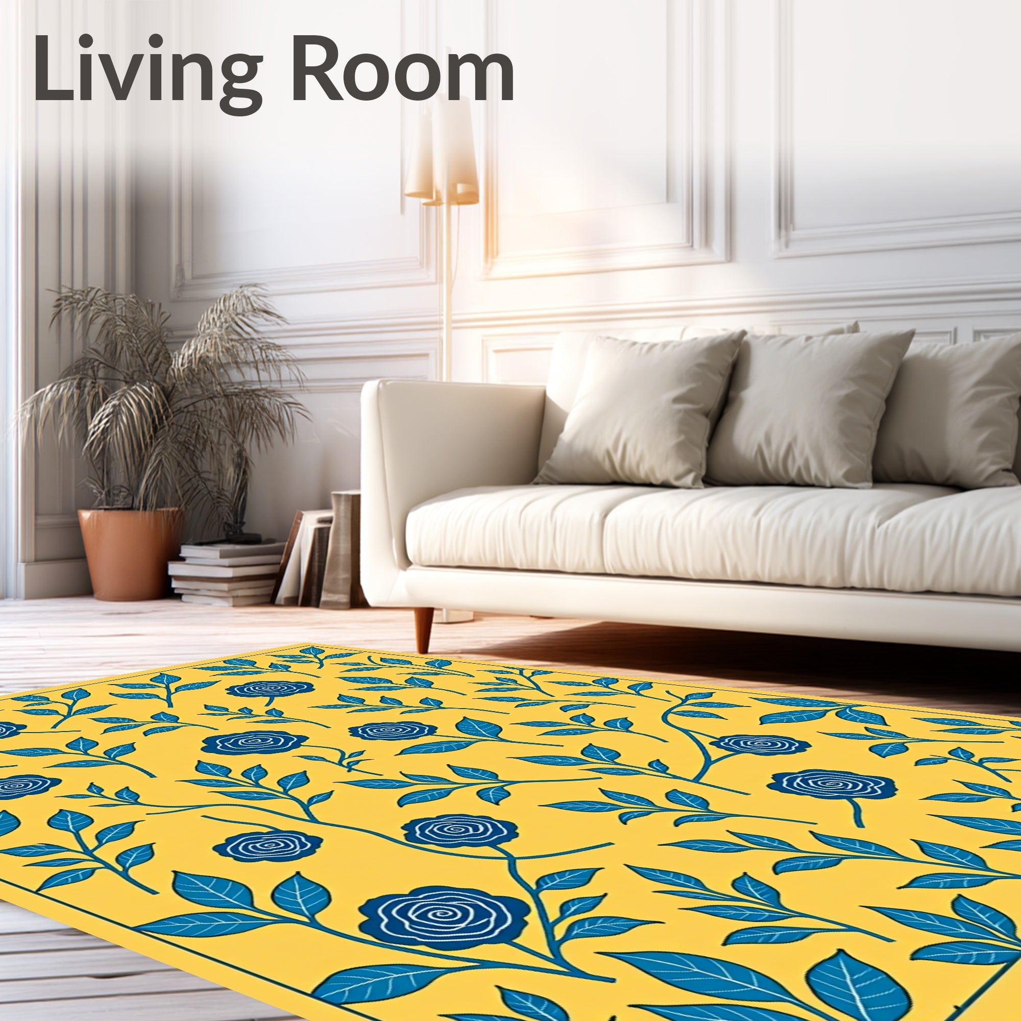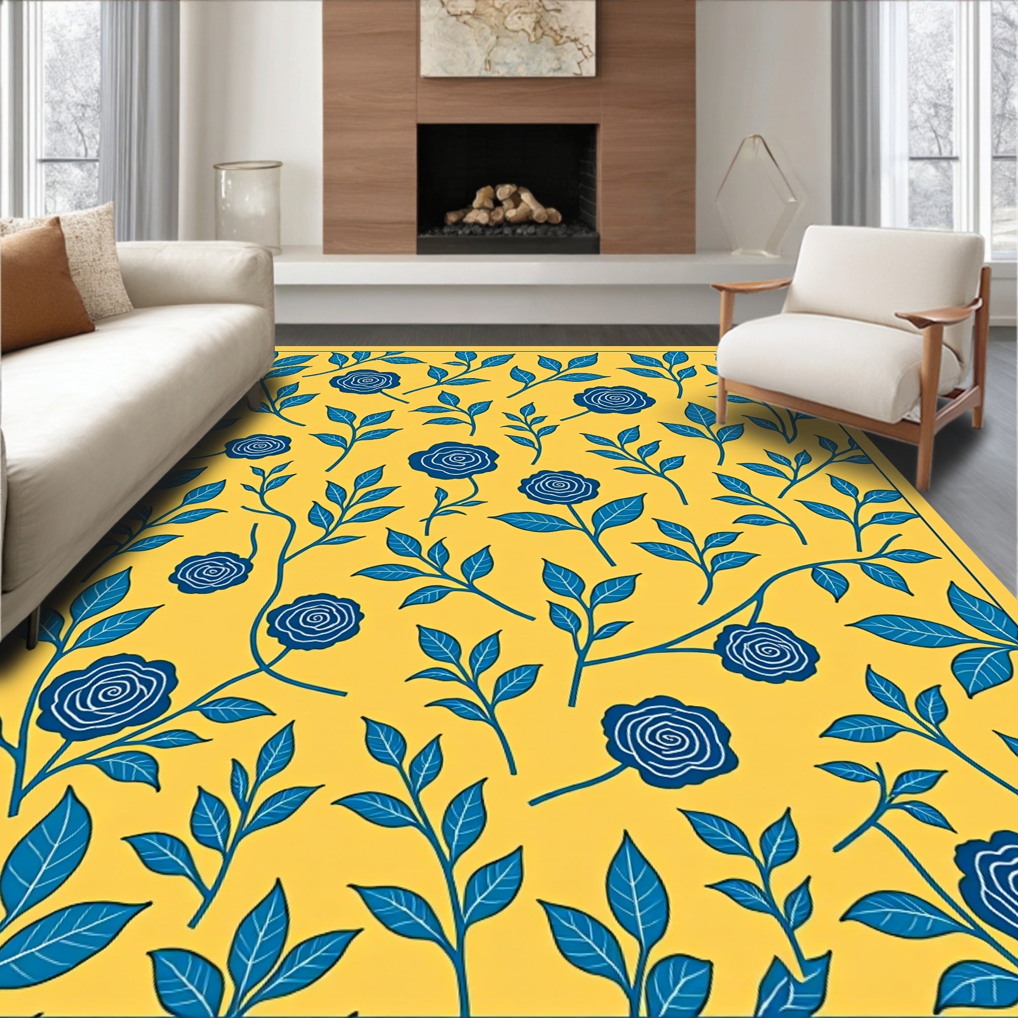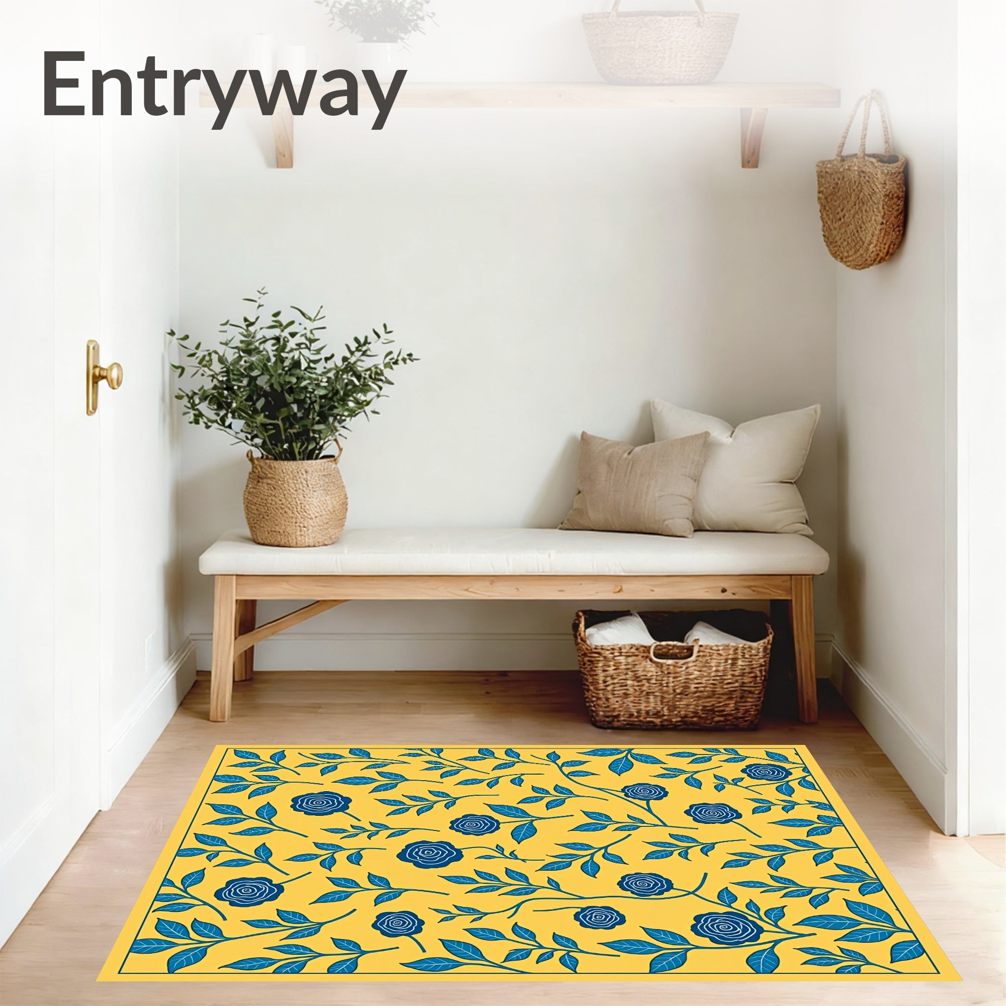 Flatwoven High Traffic Area Rug, Floral Botanical Vine Trellis Decorative, Non Slip, Stain Resistant, Washable Area Rugs for Living Room, Bedroom (Yellow) Overview: