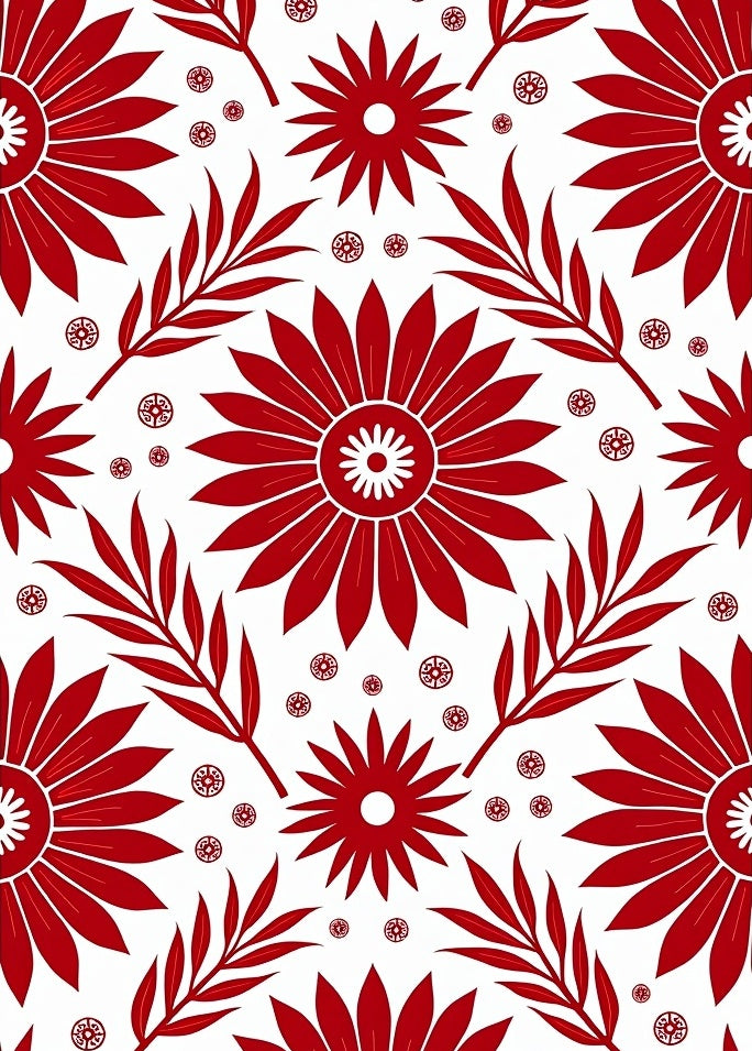 Floral Burst Motif with Radiant Petals and Ornate Layering Effects(Red)
