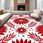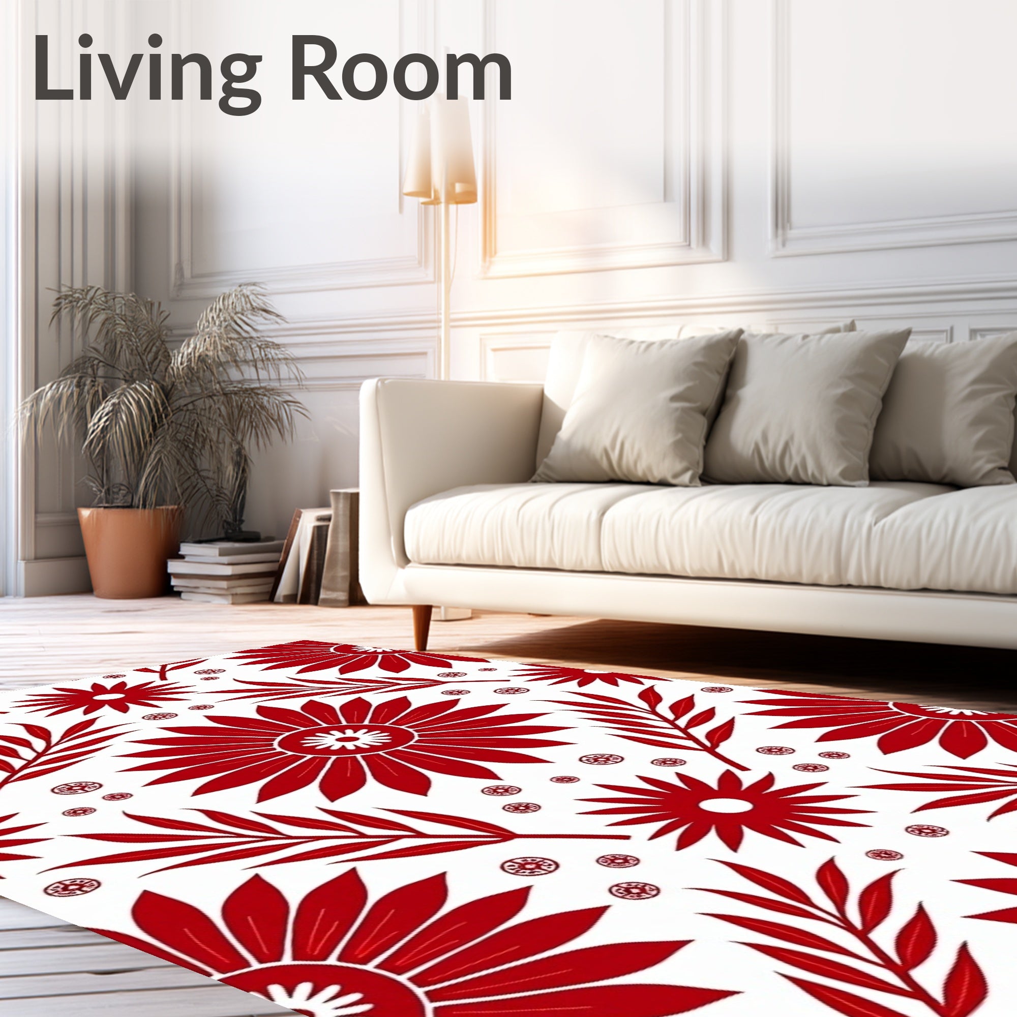 Ultra Soft Area Rug, Non Slip, Stain Resistant, Washable Area Rugs for Living Room, Bedroom, Floral Burst Motif with Radiant Petals and Ornate Layering Effects(Red) Overview: