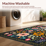 Ultra Soft Area Rug, Non Slip, Stain Resistant, Washable Area Rugs for Living Room, Bedroom, Floral Fantasy Low Pile(Black) Overview: