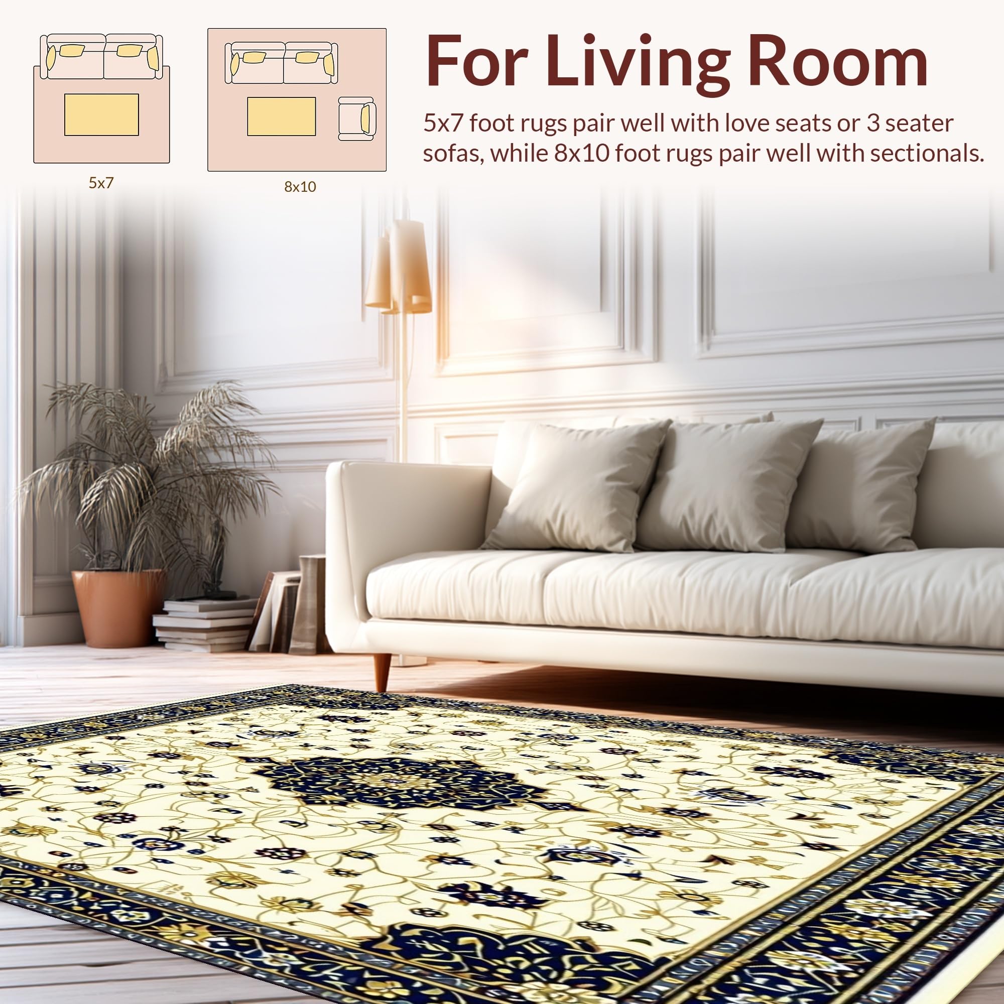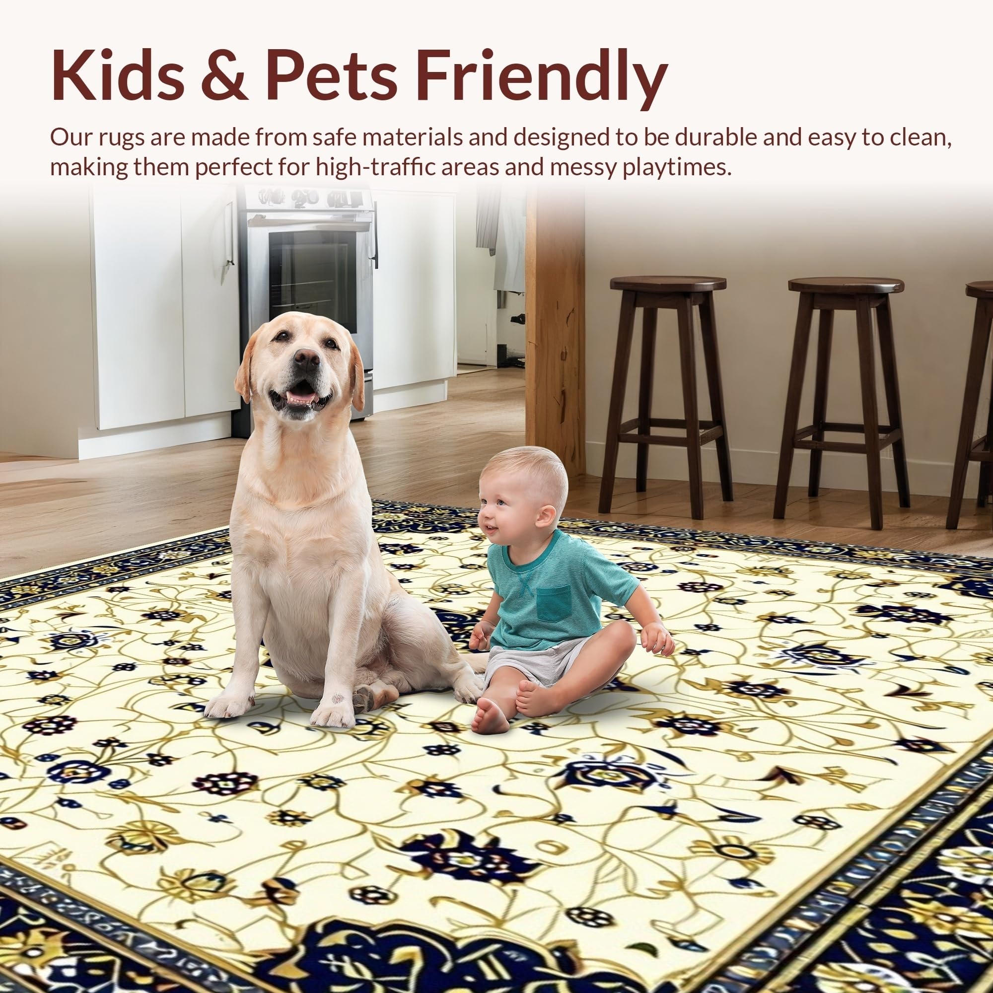 Ultra Soft Area Rug, Non Slip, Stain Resistant, Washable Area Rugs for Living Room, Bedroom, Floral Geometric Symphony(Ivory) Overview: