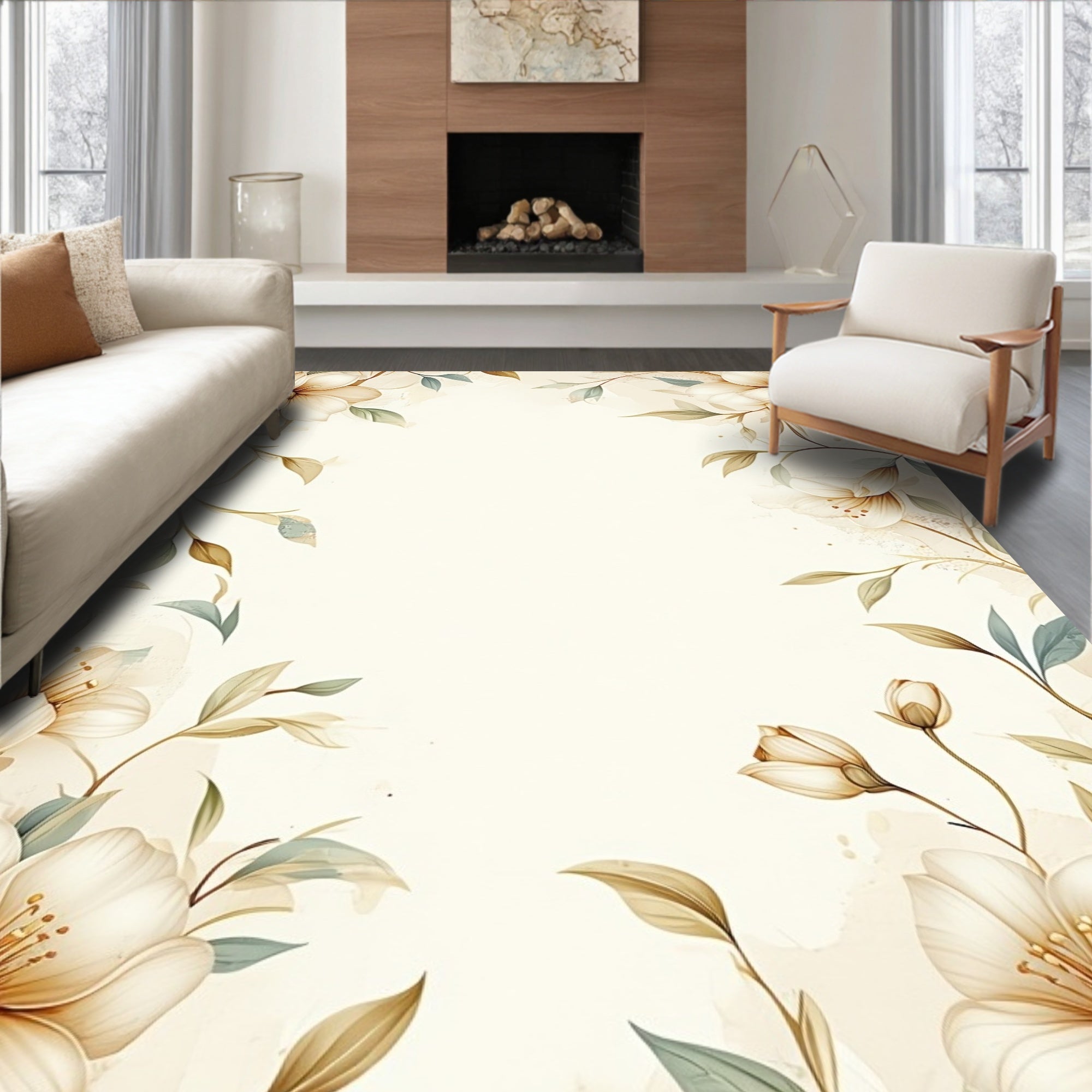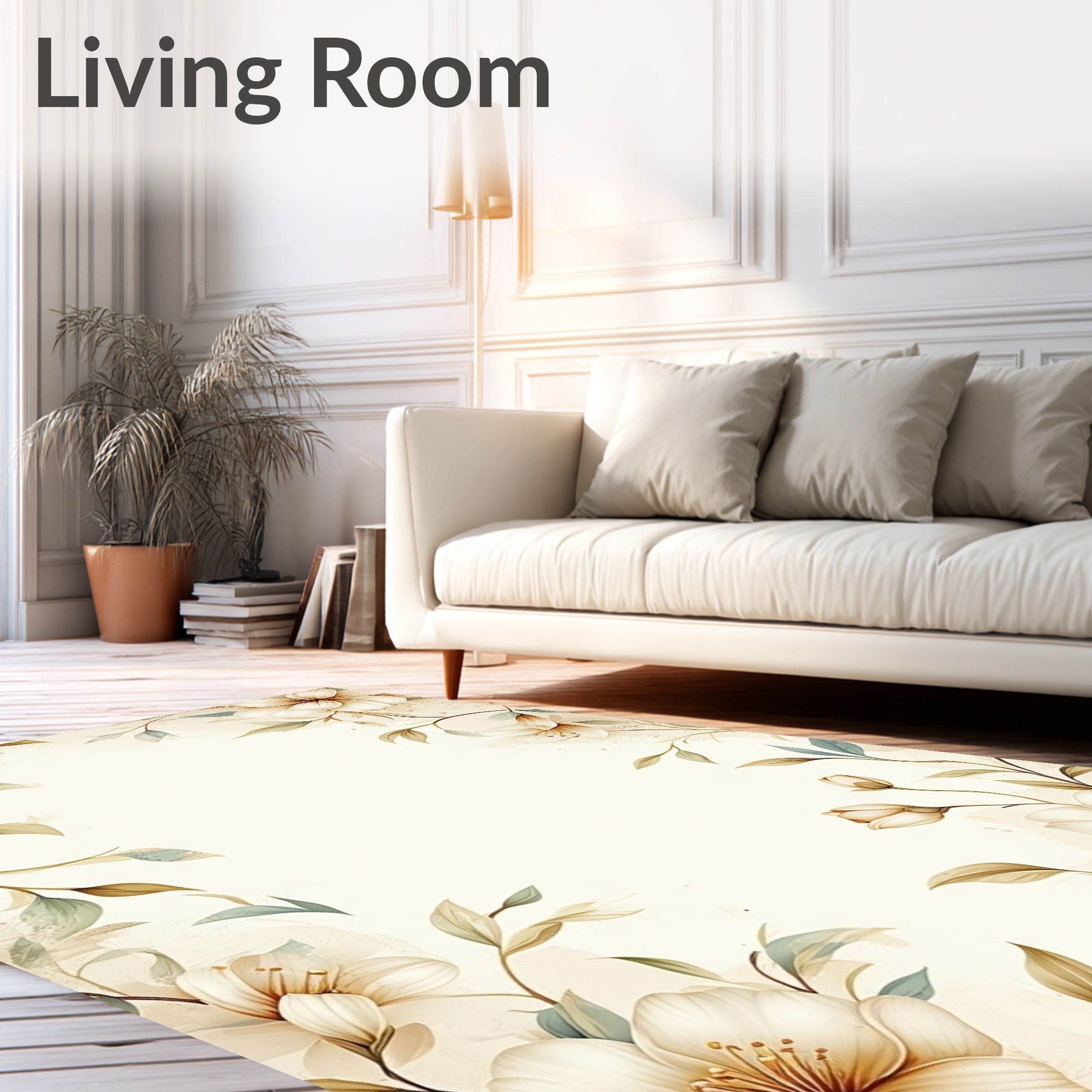 Flatwoven High Traffic Area Rug, Floral Neutral Botanical Gentle Hues, Non Slip, Stain Resistant, Washable Area Rugs for Living Room, Bedroom (Beige) Overview: