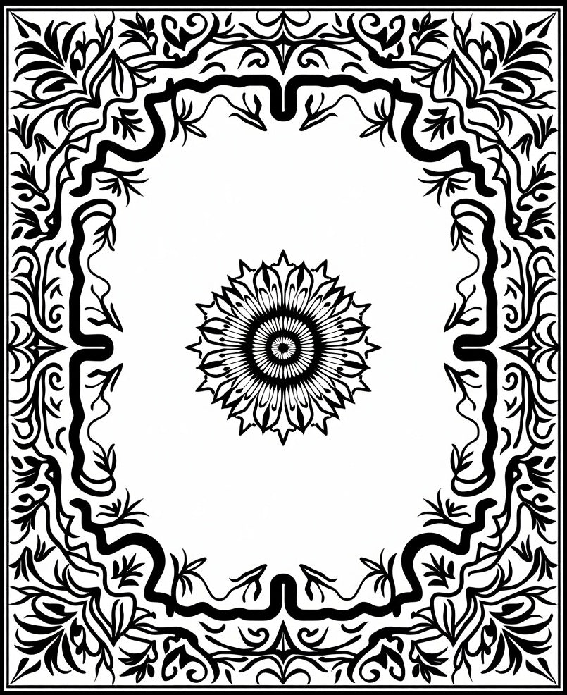 Floral Medallion with Symmetrical Branch Network(Black)