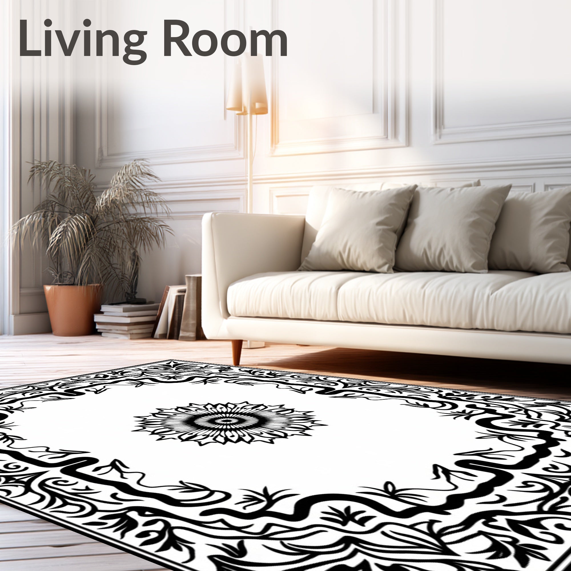 Flatwoven High Traffic Area Rug, Floral Medallion with Symmetrical Branch Network, Non Slip, Stain Resistant, Washable Area Rugs for Living Room, Bedroom (Black) Overview: