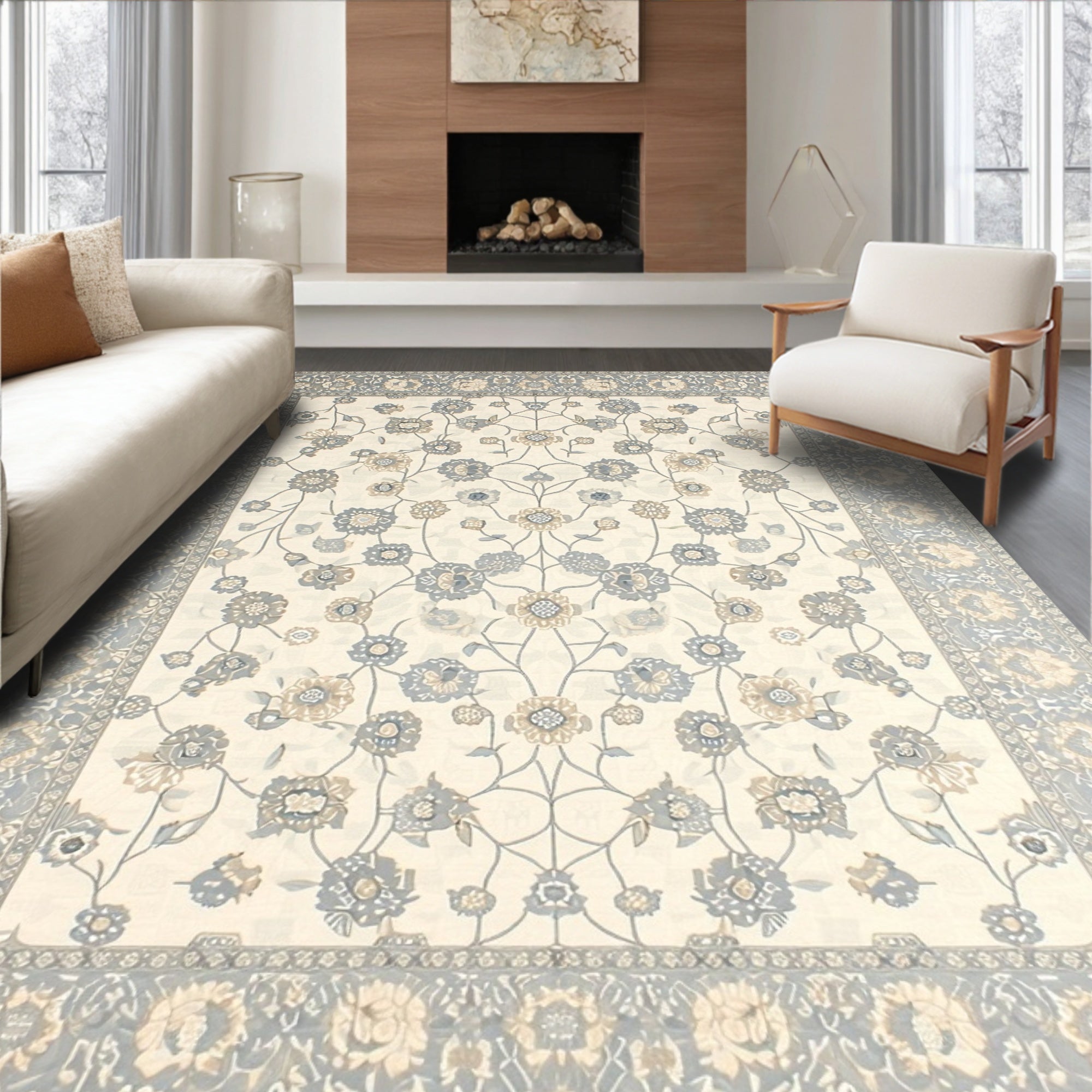 Ultra Soft Area Rug, Non Slip, Stain Resistant, Washable Area Rugs for Living Room, Bedroom, Floral Patchwork Beige & Gray Geometric Design(Beige) Overview: