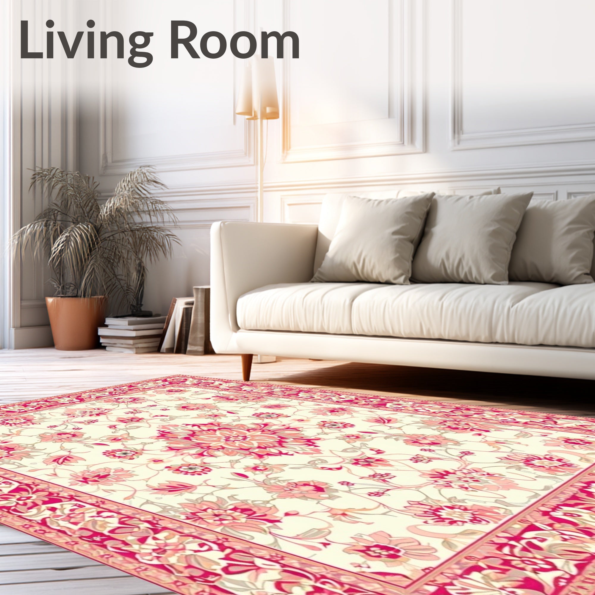 Flatwoven High Traffic Area Rug, Floral Patterned, Non Slip, Stain Resistant, Washable Area Rugs for Living Room, Bedroom (Ivory) Overview: