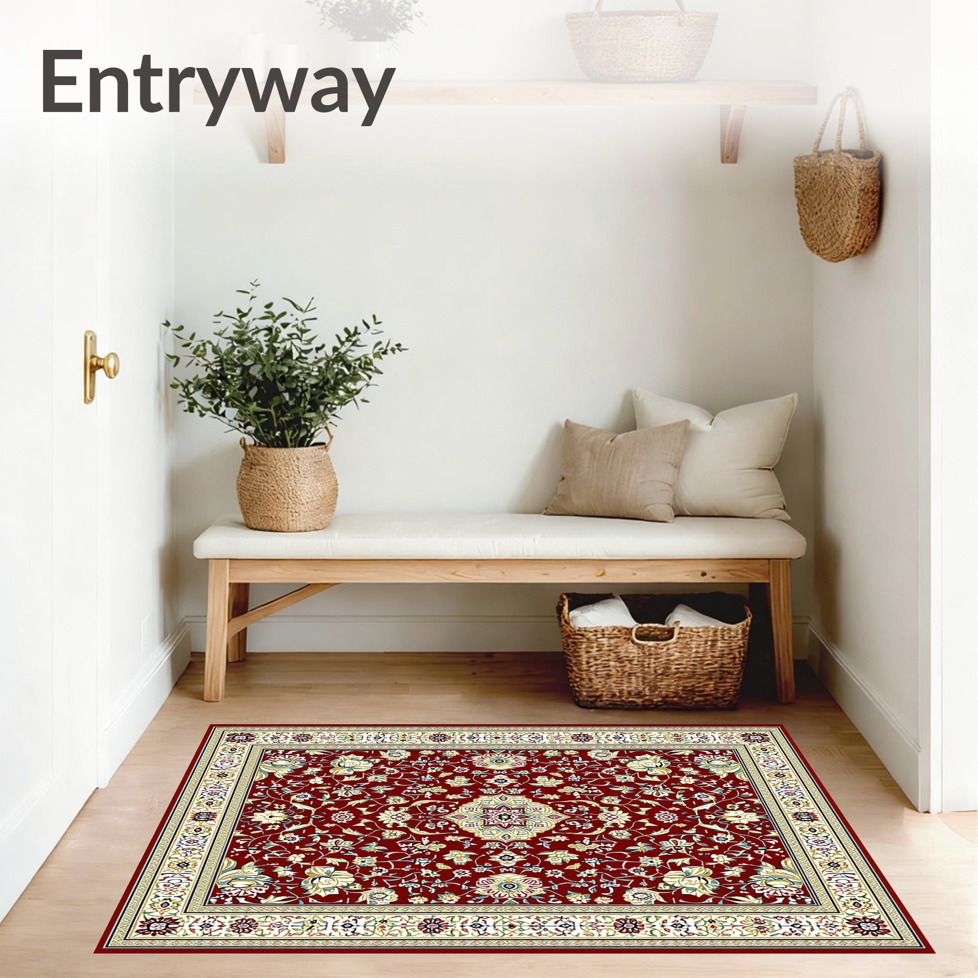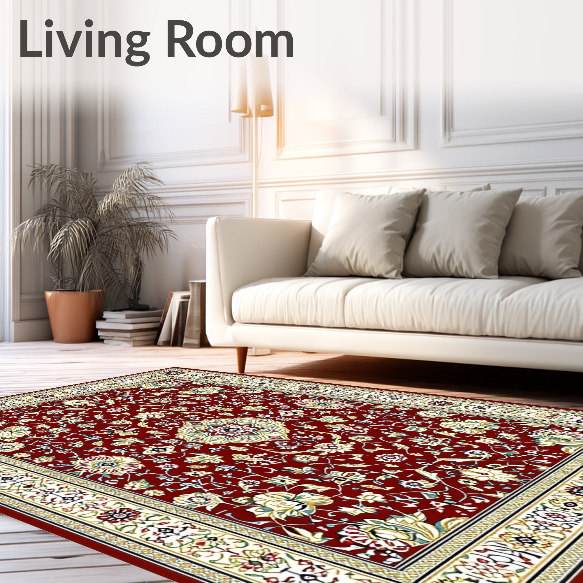 Ultra Soft Area Rug, Non Slip, Stain Resistant, Washable Area Rugs for Living Room, Bedroom, Floral Red Beige Area(Red) Overview: