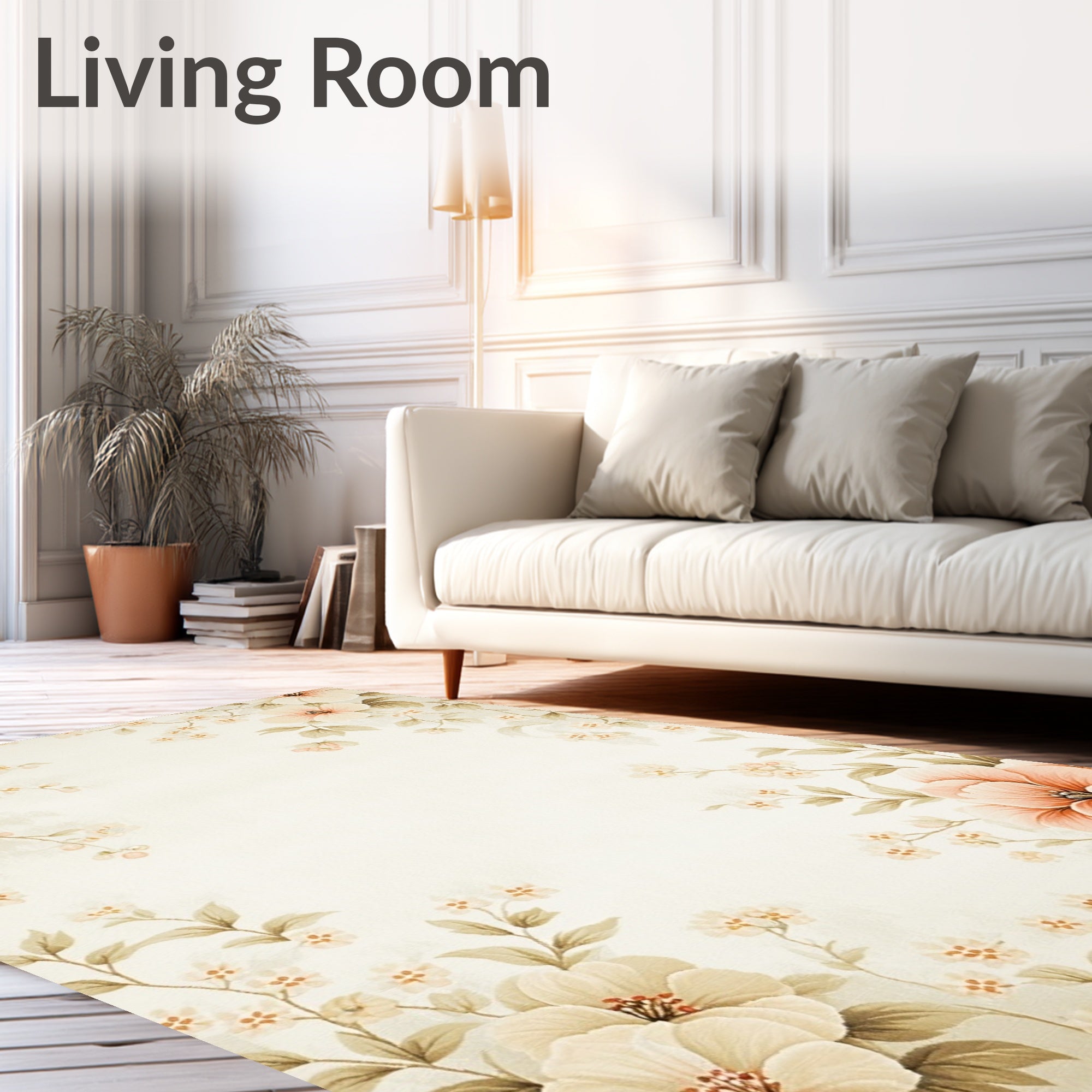 Ultra Soft Area Rug, Non Slip, Stain Resistant, Washable Area Rugs for Living Room, Bedroom, Floral Serenity Beige Elegant Bath Non Slip Shower(Ivory) Overview: