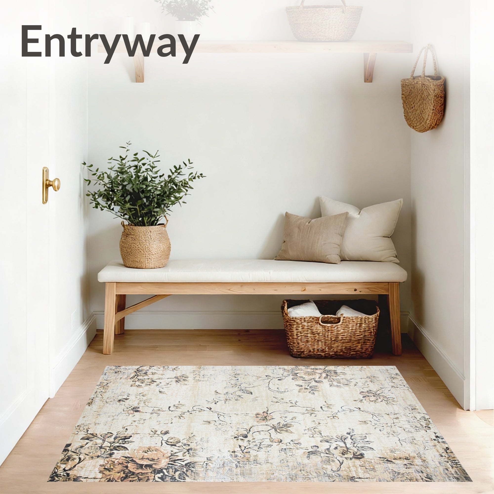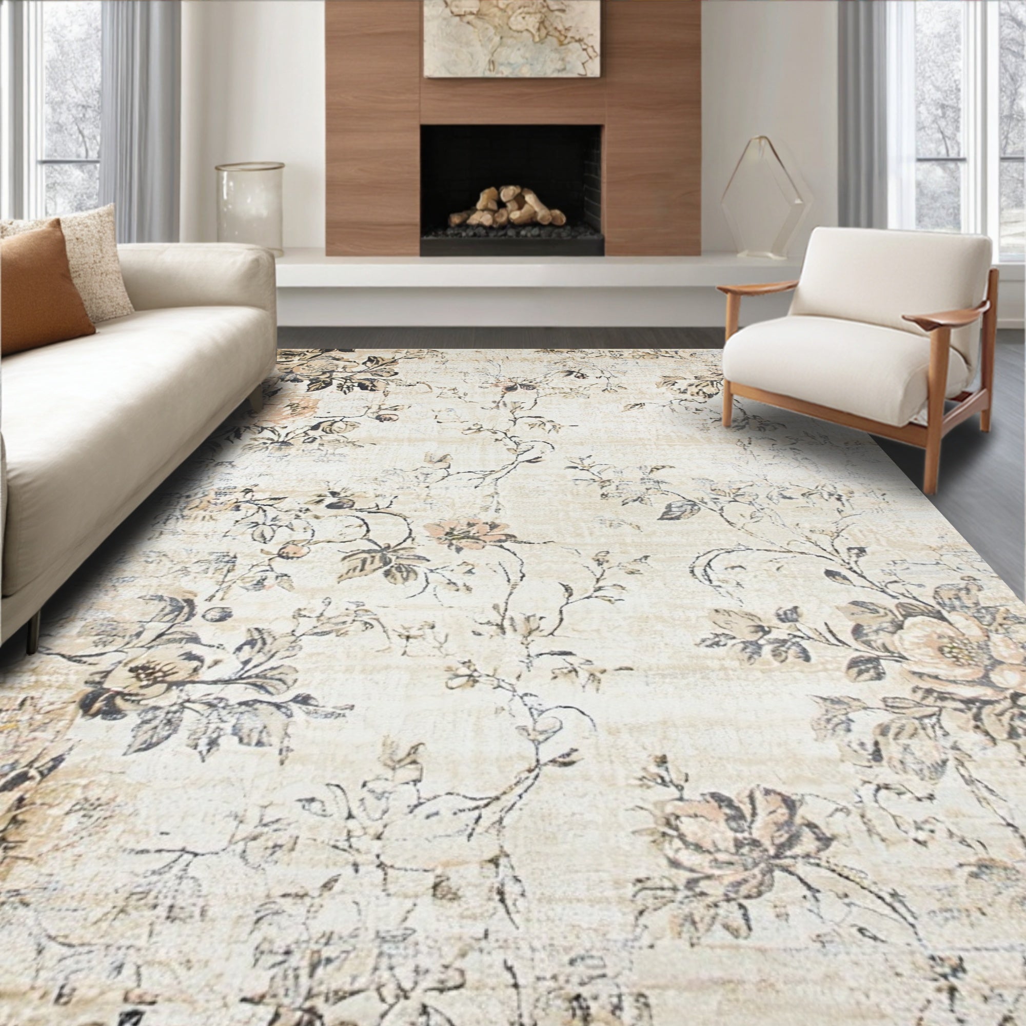 Ultra Soft Area Rug, Non Slip, Stain Resistant, Washable Area Rugs for Living Room, Bedroom, Floral Whisper Beige Anti Slip Bath Absorbent Shower(Beige) Overview: